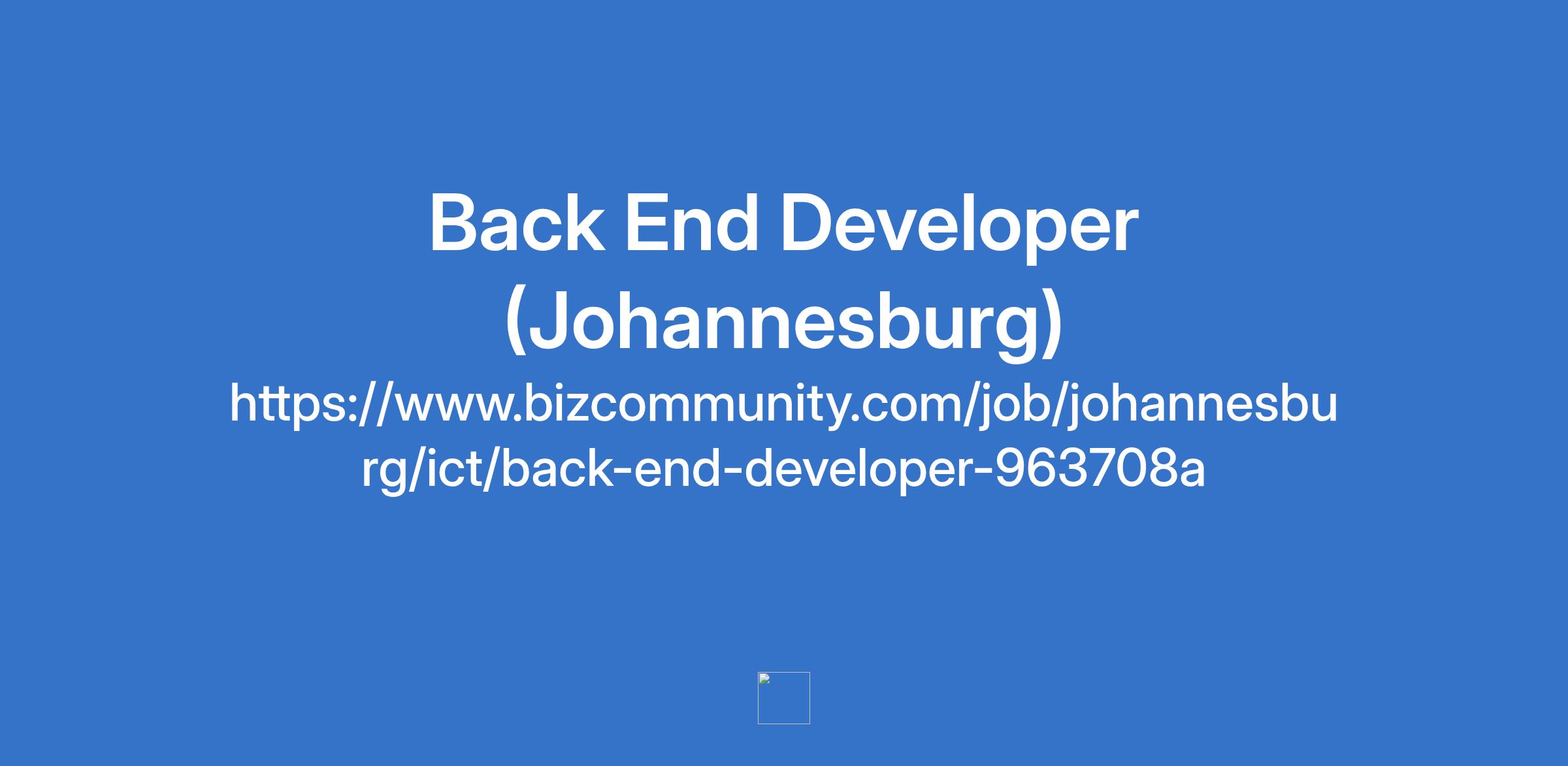 Back End Developer (Johannesburg)