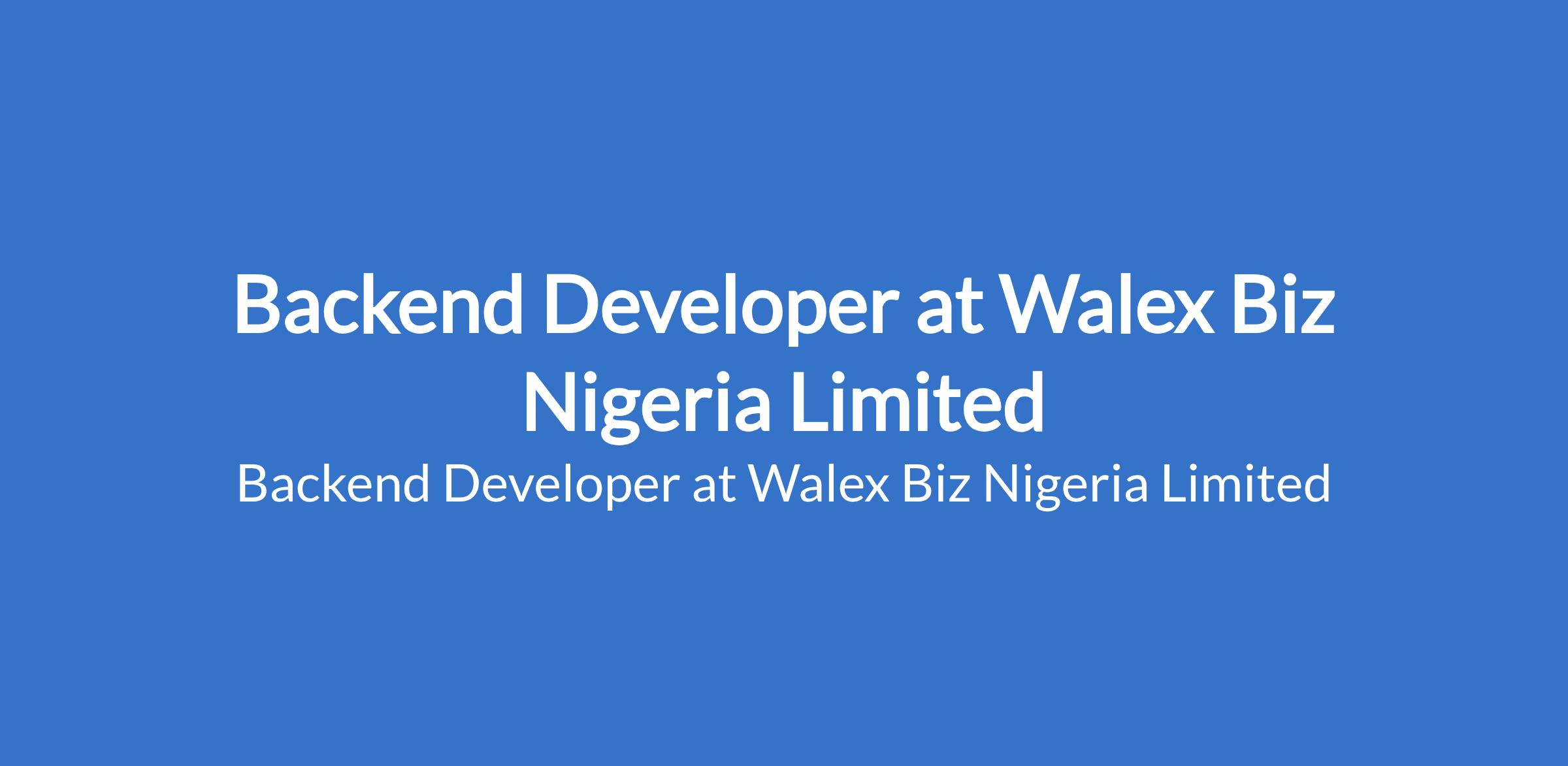 Backend Developer at Walex Biz Nigeria Limited