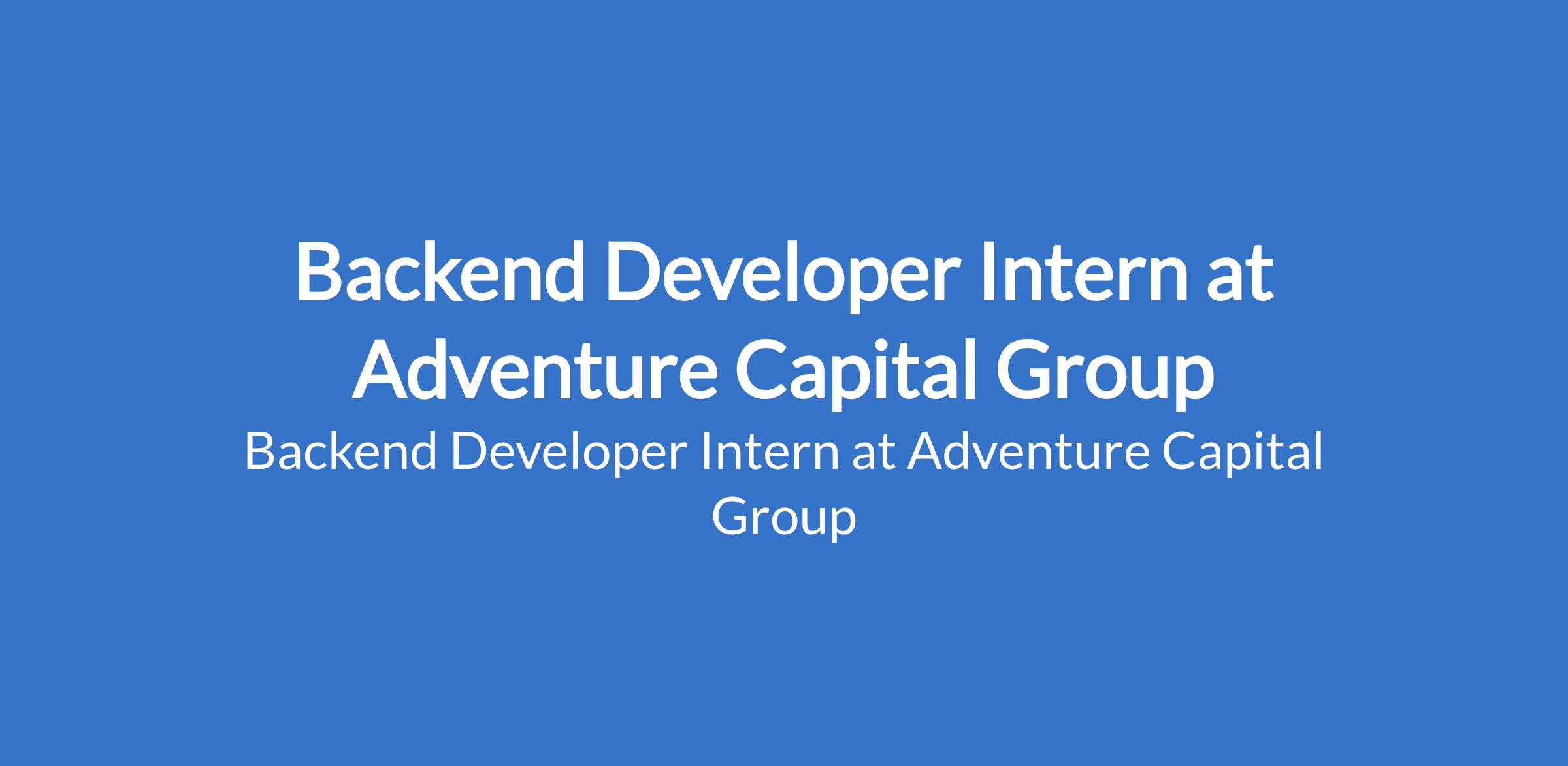 Backend Developer Intern at Adventure Capital Group