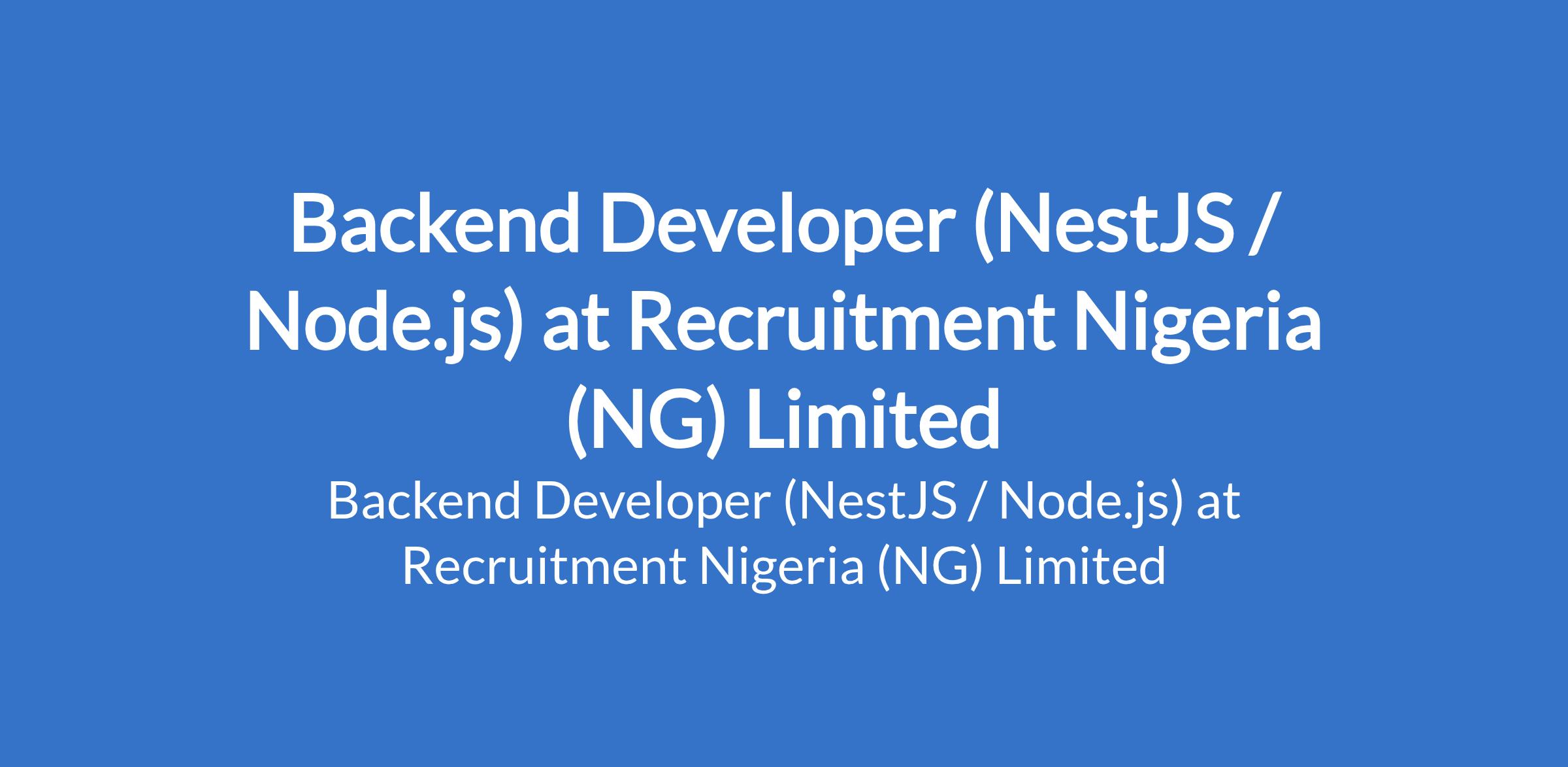 Recruitment Nigeria (NG) Limited is recruiting to fill the position of: Backend Developer (NestJS / Node.js). The position is located in Lagos State. Interested candidates should possess a Bachelors Degree in Computer Science, Software Engineering, or a related field with minimum of 2 years of experience as a Backend Developer or Software Developer in a backend-focused role.