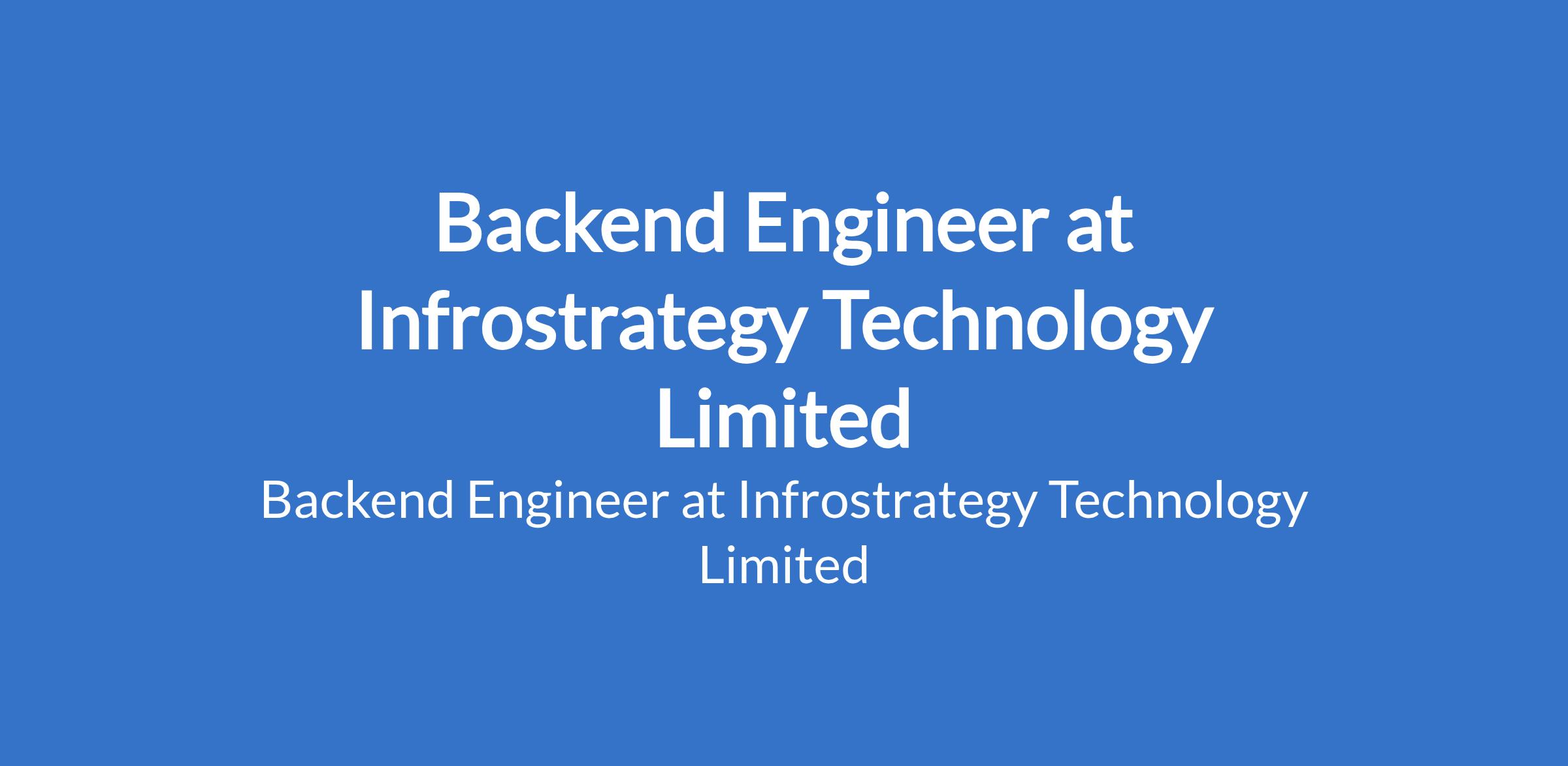 Infrostrategy Technology Limited is recruiting to fill the position of: Backend Engineer. The position is located in Abuja (FCT). Interested candidates should possess a Bachelors Degree in Computer Science, Computer Engineering, Software Engineering /Development or any other related discipline with at least 5 years of experience in the development and delivery of high-quality software applications.