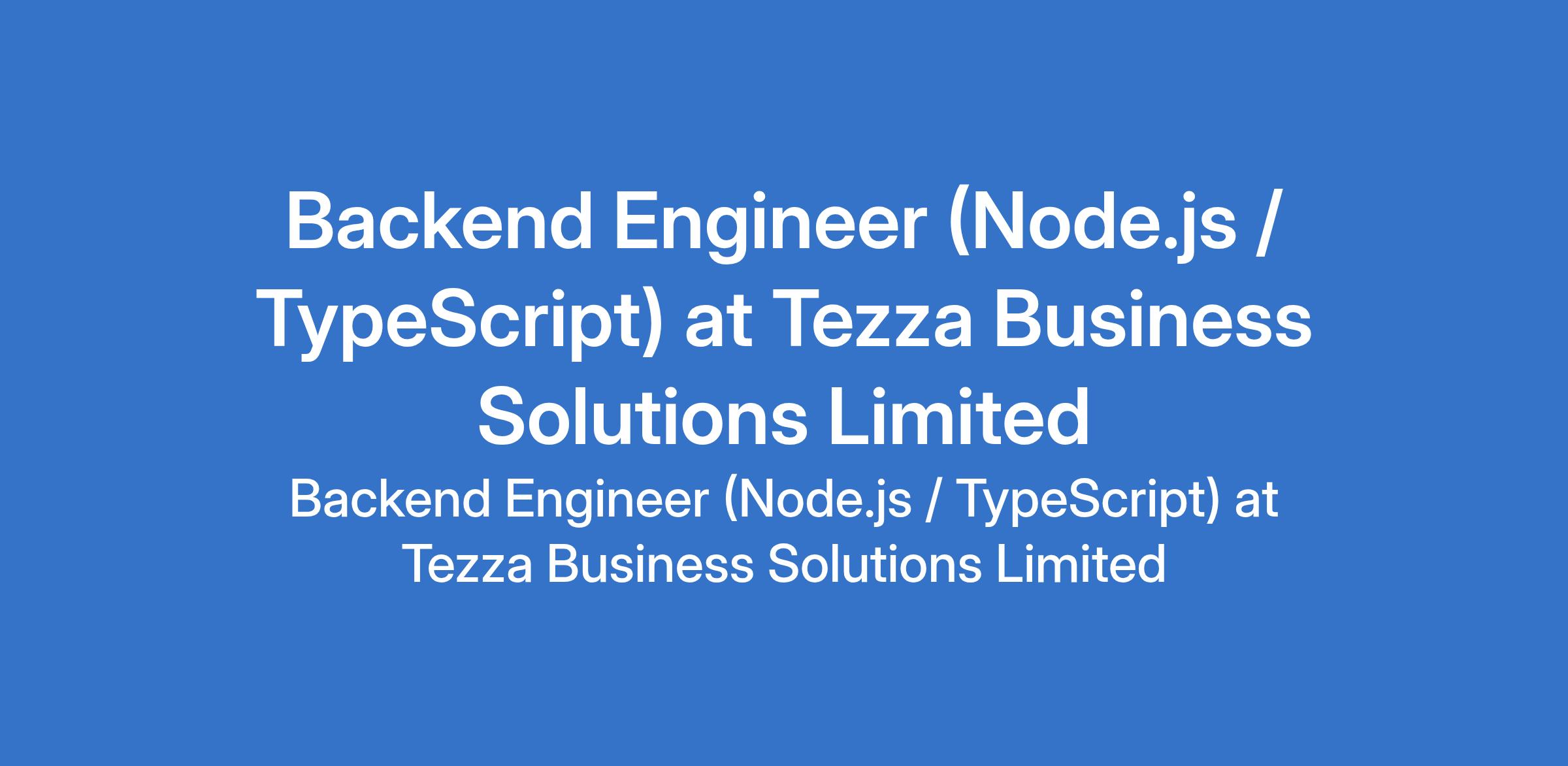 Tezza Business Solutions Limited is recruiting to fill the position of: Backend Engineer (Node.js / TypeScript). The position is located in Magodo Phase 1, Lagos State. Interested candidates should possess relevant qualifications with 4+ years of backend engineering experience with Node.js.