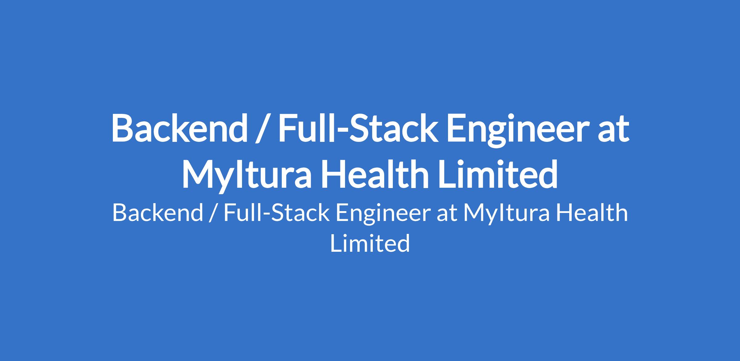 MyItura Health Limited is recruiting to fill the position of: Backend / Full-Stack Engineer. The position is located in Lagos State. Interested candidates should possess a Bachelors degree in Computer Science, Engineering, or a related field (or equivalent practical experience) with 3+ years of experience as a Full-Stack or Backend Engineer.