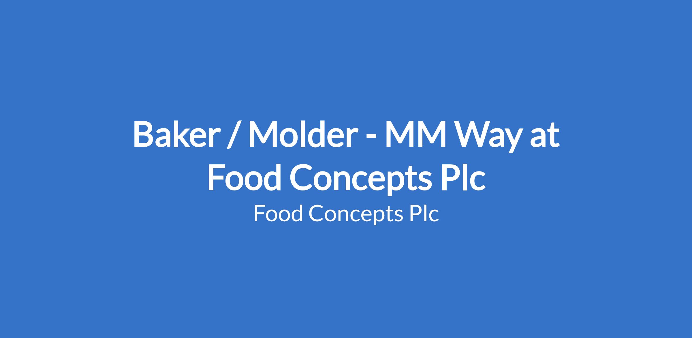 Baker / Molder - MM Way at Food Concepts Plc