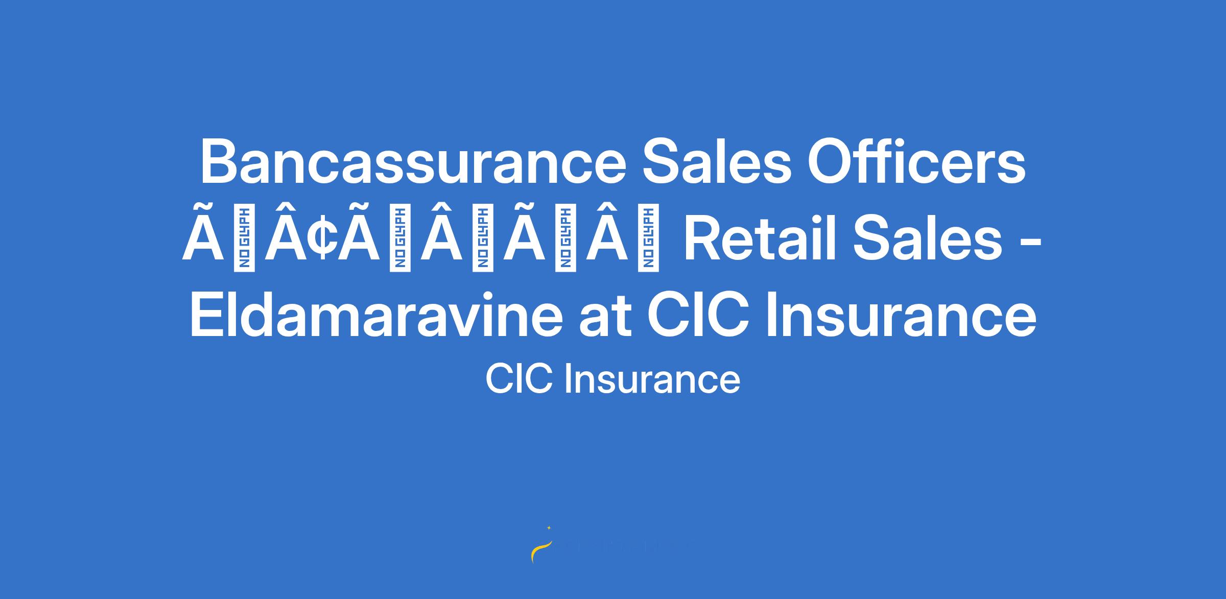 Bancassurance Sales Officers âÃÂàRetail Sales - Eldamaravine at CIC Insurance