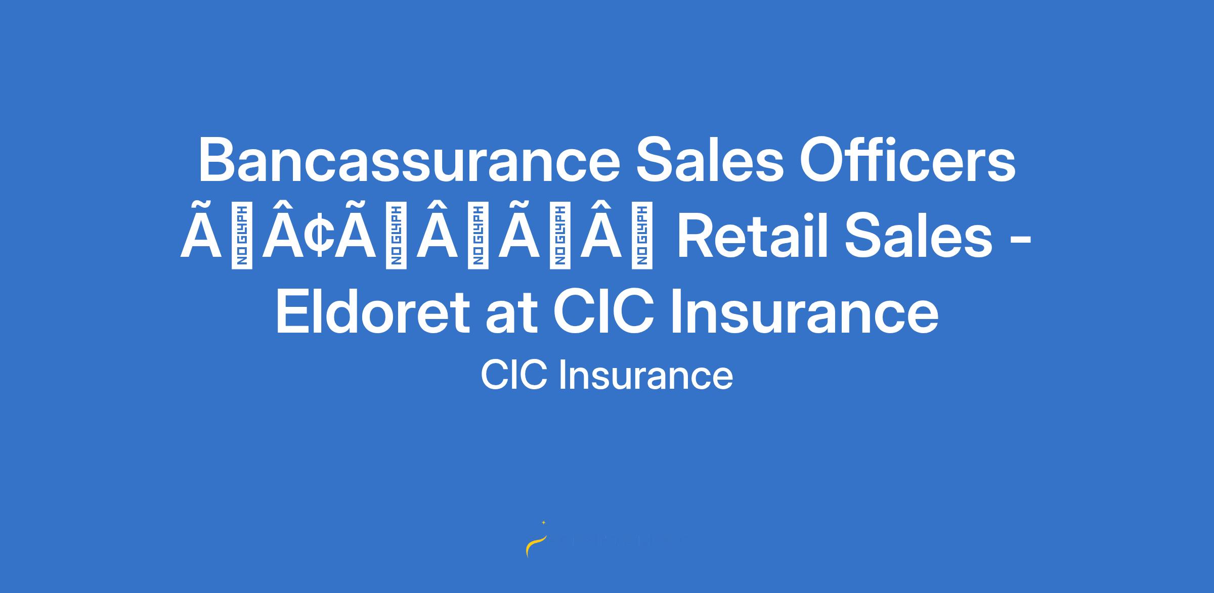 Bancassurance Sales Officers âÃÂàRetail Sales - Eldoret at CIC Insurance