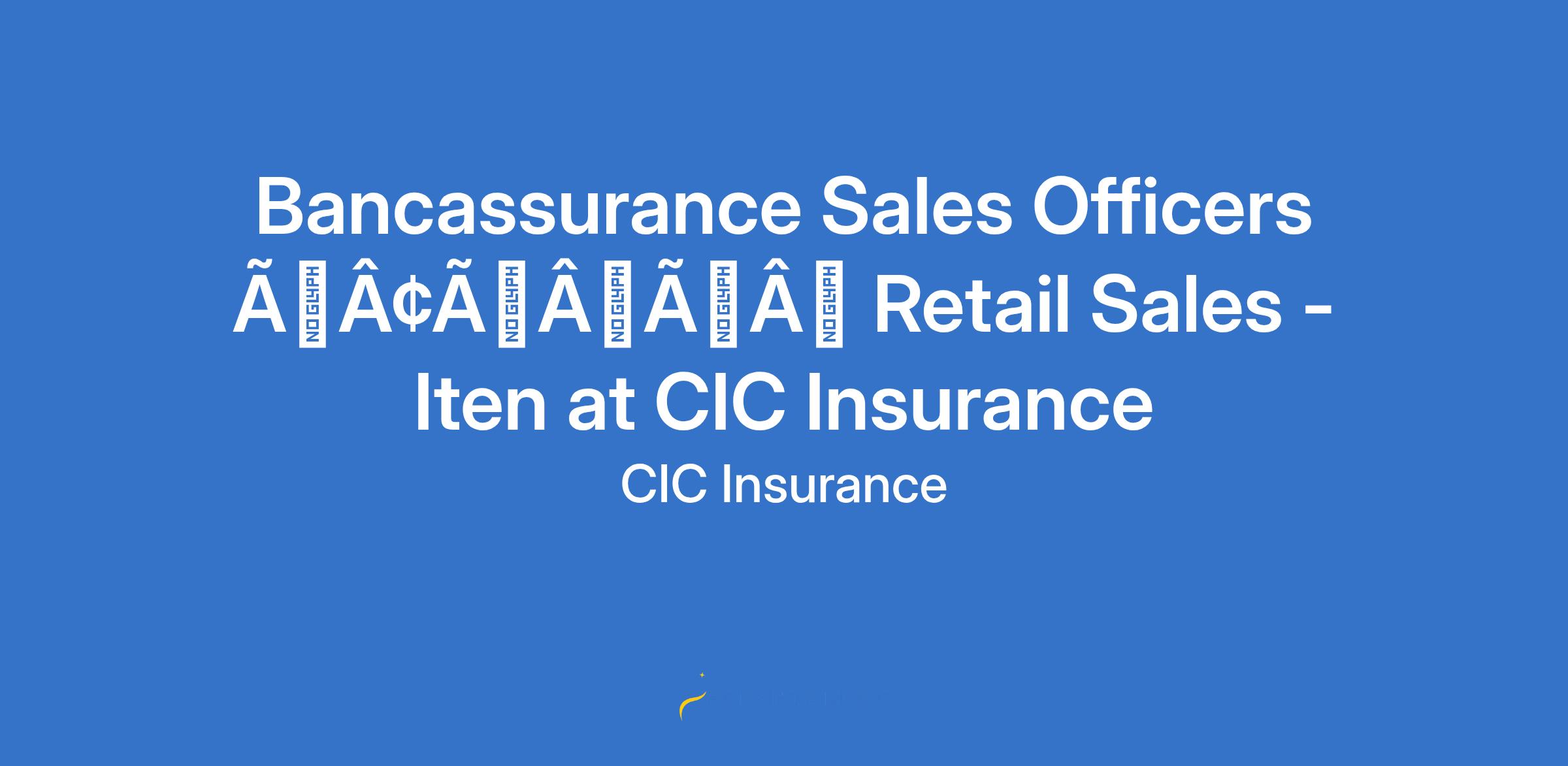 Bancassurance Sales Officers âÃÂàRetail Sales - Iten at CIC Insurance