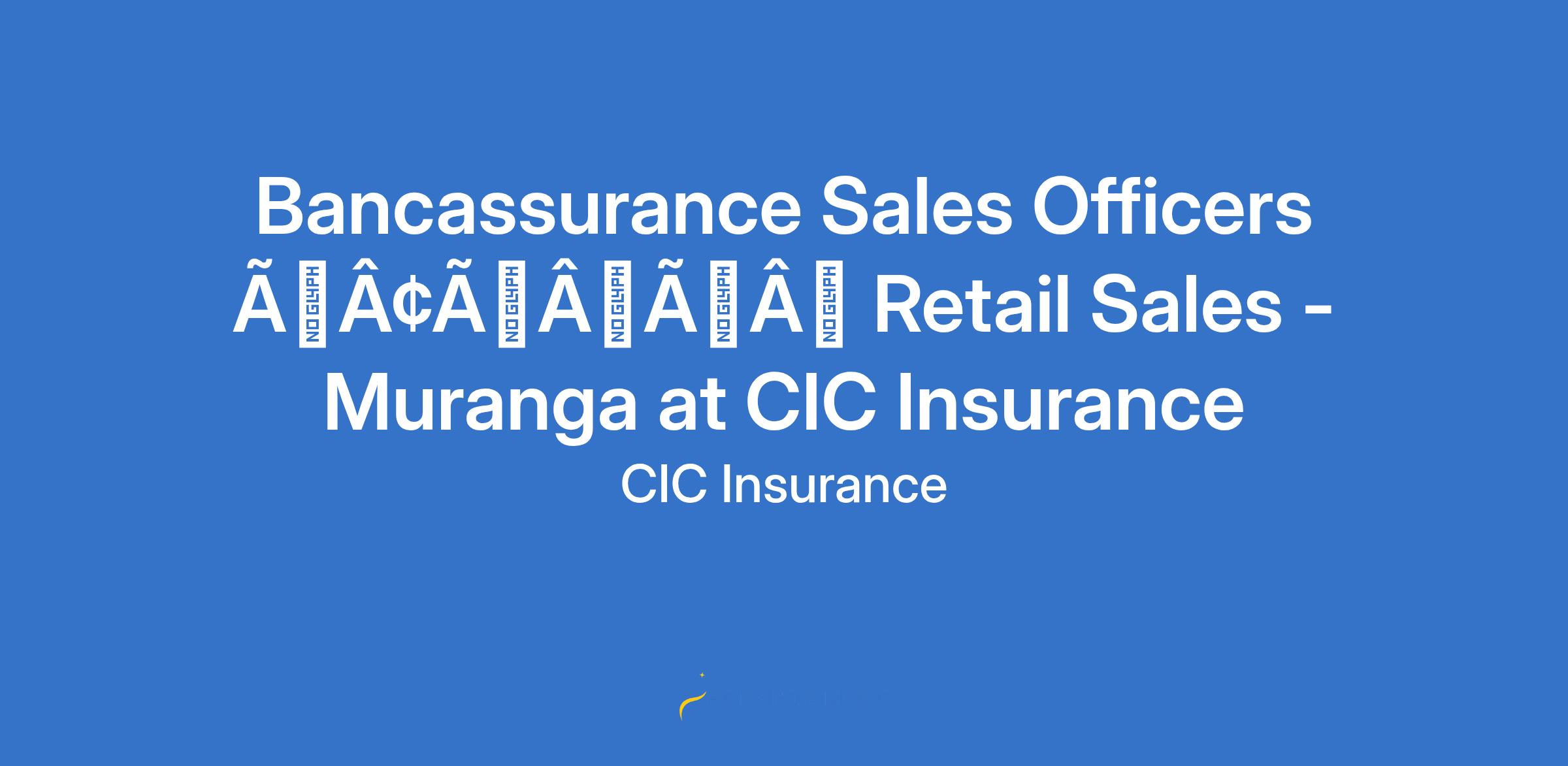 Bancassurance Sales Officers âÃÂàRetail Sales - Muranga at CIC Insurance