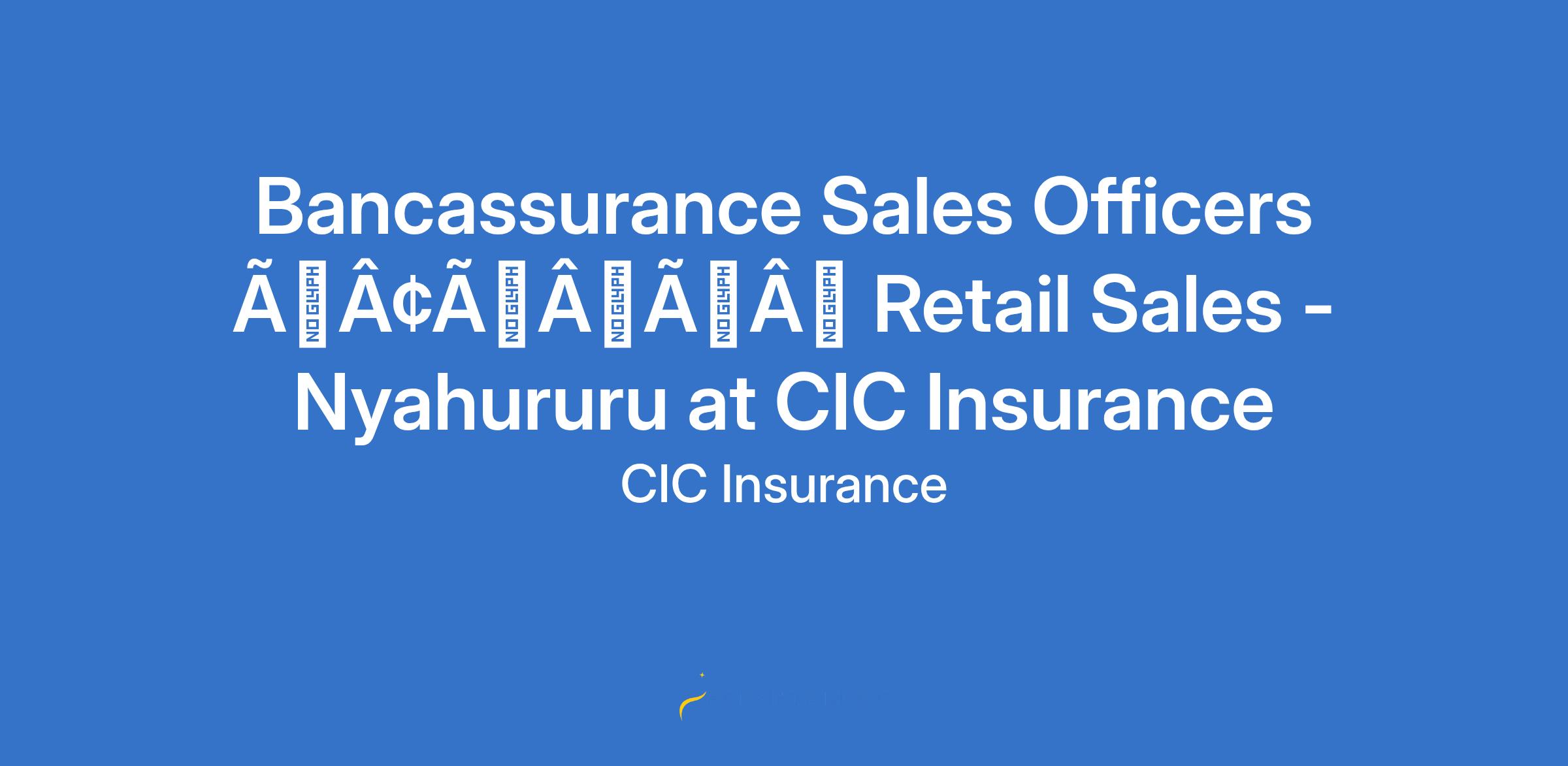 Bancassurance Sales Officers âÃÂàRetail Sales - Nyahururu at CIC Insurance