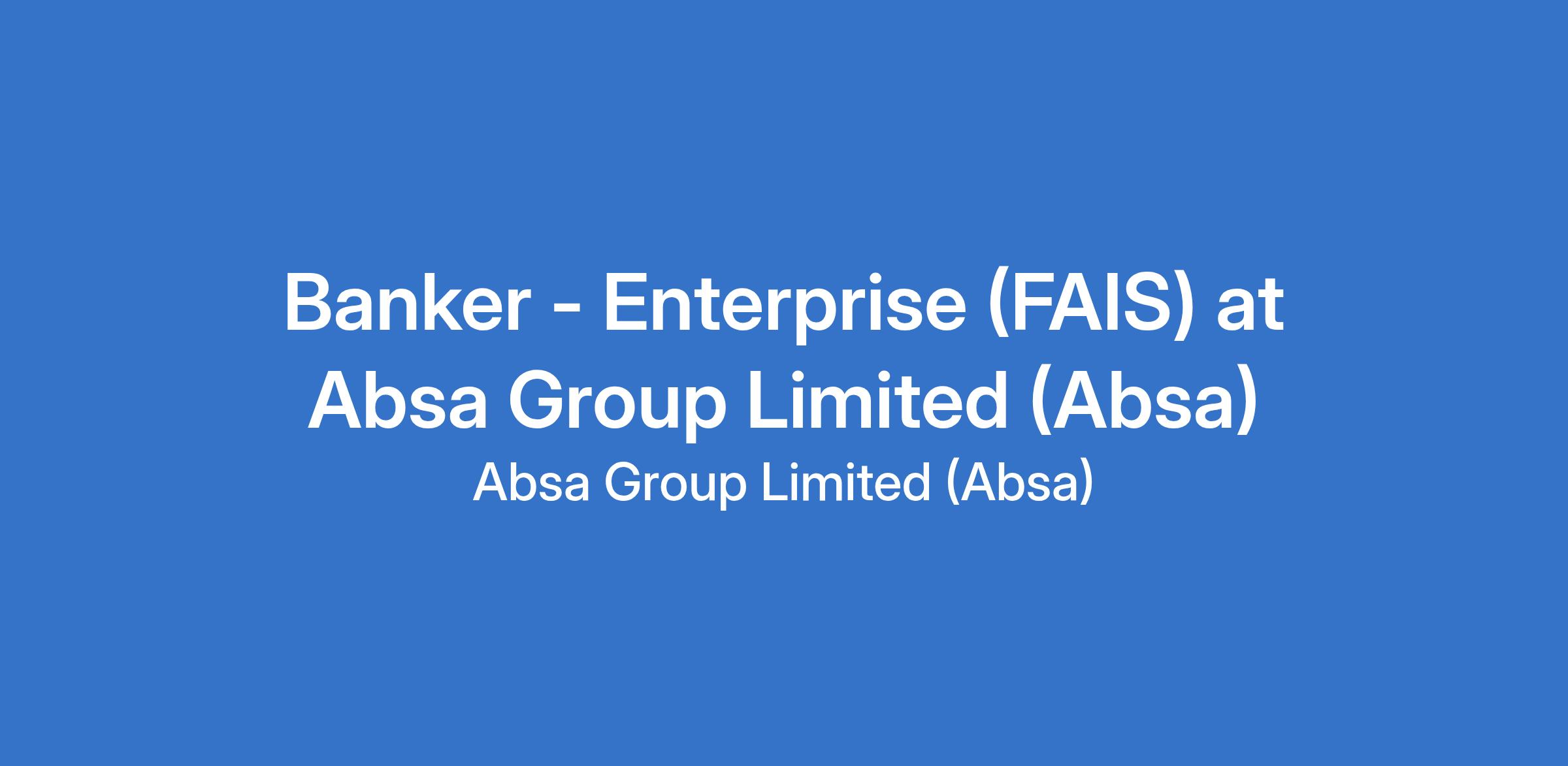 Banker - Enterprise (FAIS) at Absa Group Limited (Absa)