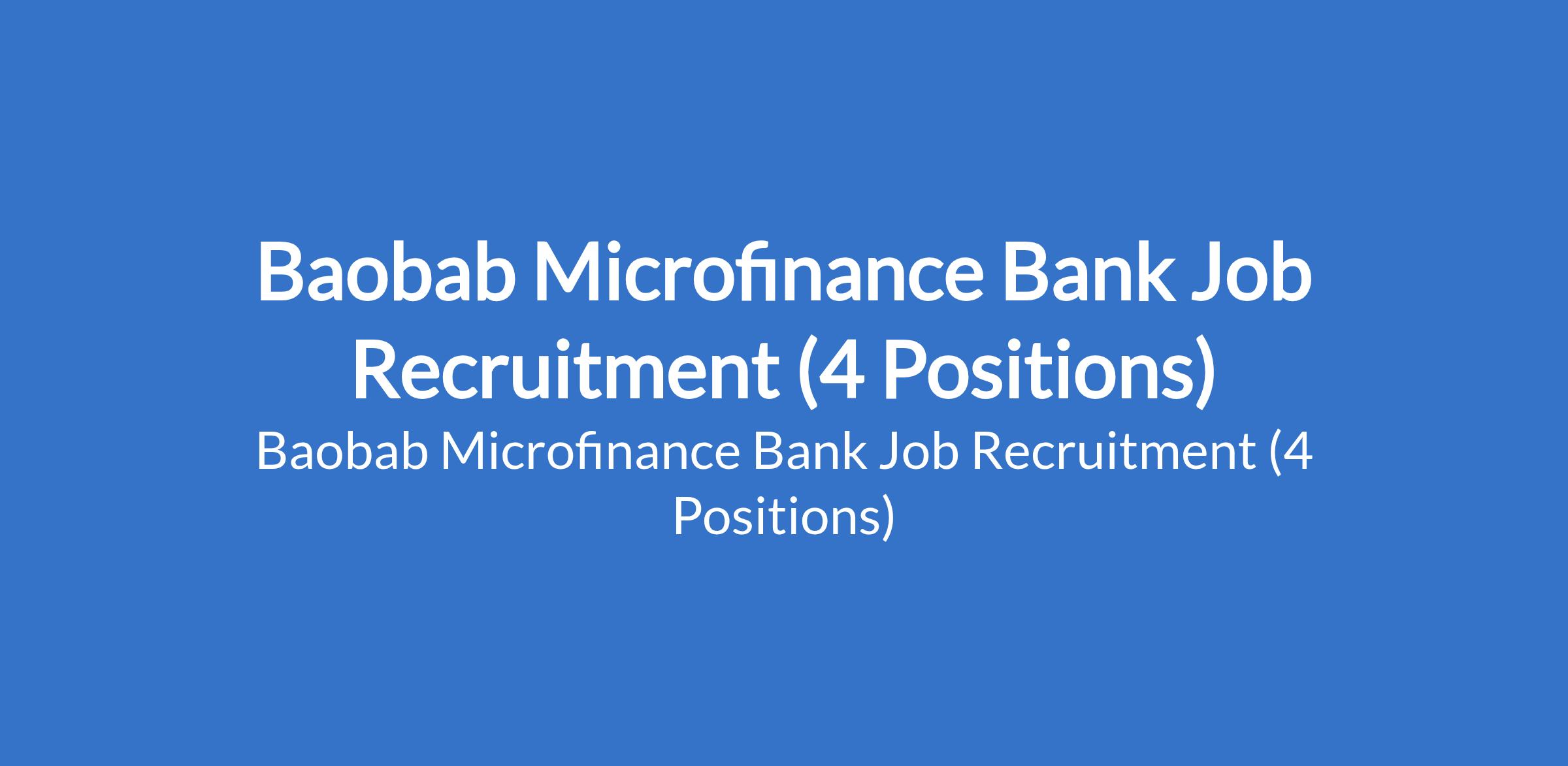Baobab Microfinance Bank Job Recruitment (4 Positions)