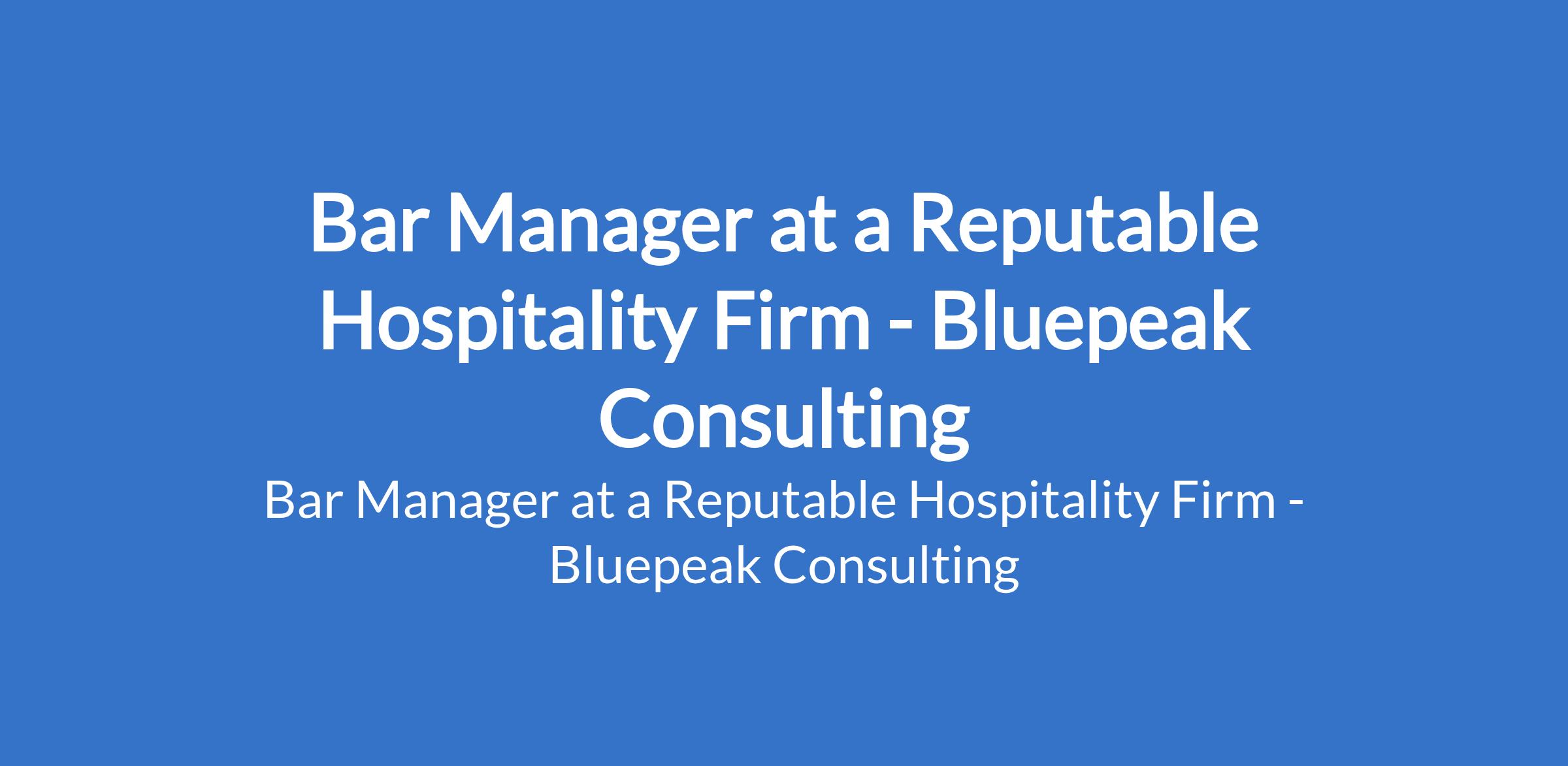 Bluepeak Consulting - Our client, a reputable Hospitality firm is recruiting to fill the position of: Bar Manager. The position is located in Port Harcourt, Rivers State. Interested candidates should possess a minimum of OND / HND in Hospitality Management or related fields with 3 5 years experience as a Bar Supervisor or Bar Manager.
