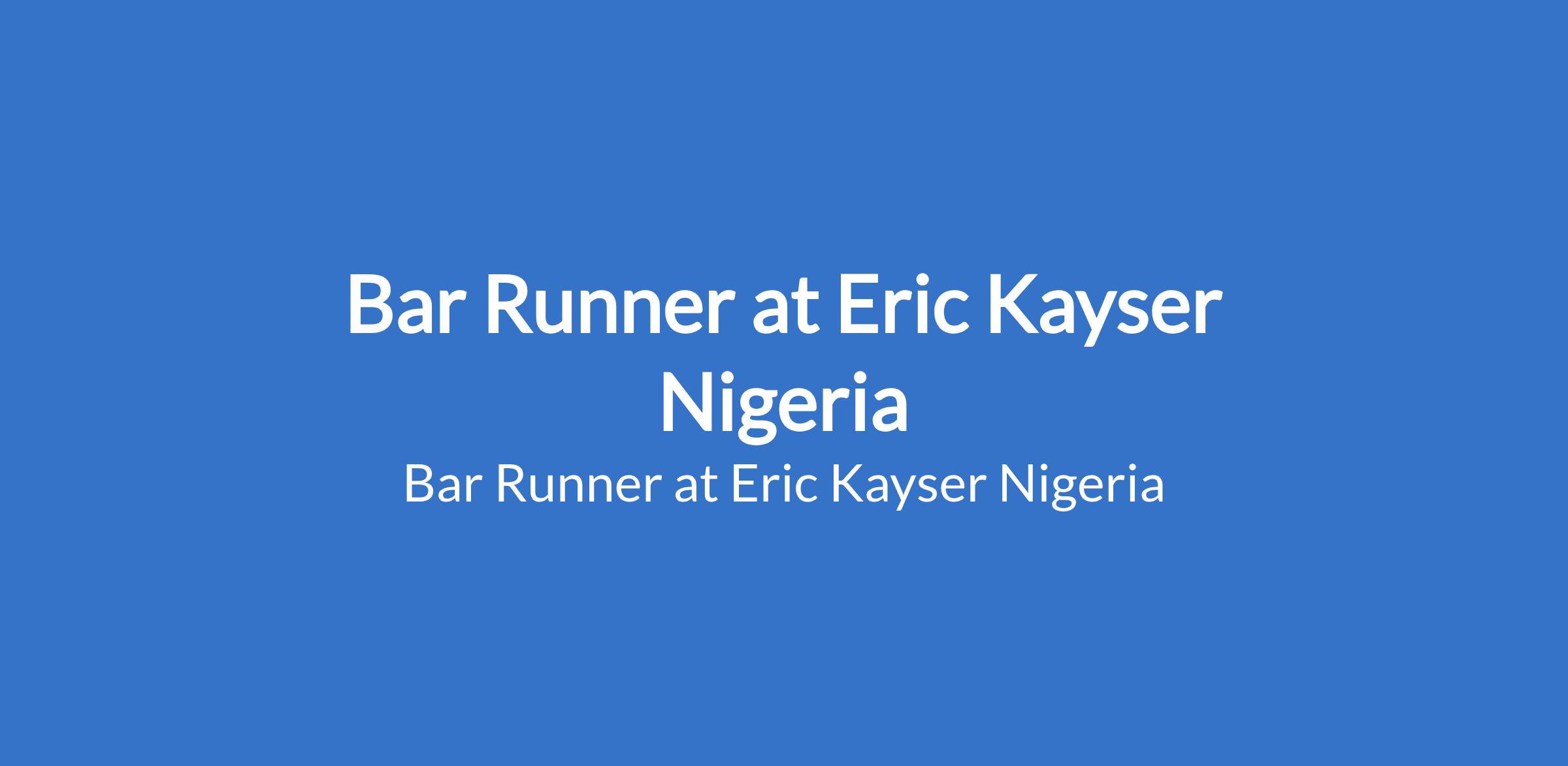 Eric Kayser Nigeria is recruiting to fill the position of: Bar Runner. The position is located in Maitama, Abuja (FCT). Salary: N75,000 / month. Interested candidates should possess an SSCE with previous experience in a restaurant or bar is an advantage but not compulsory.