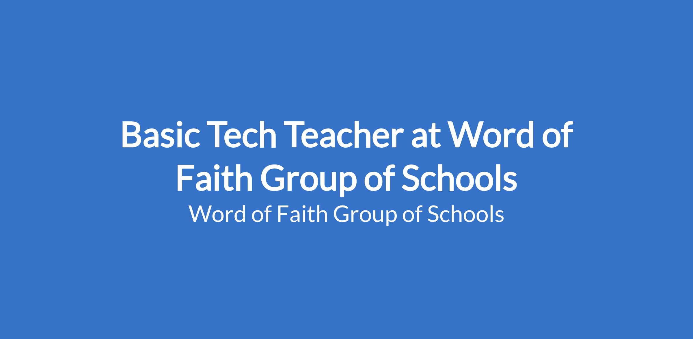 Basic Tech Teacher at Word of Faith Group of Schools