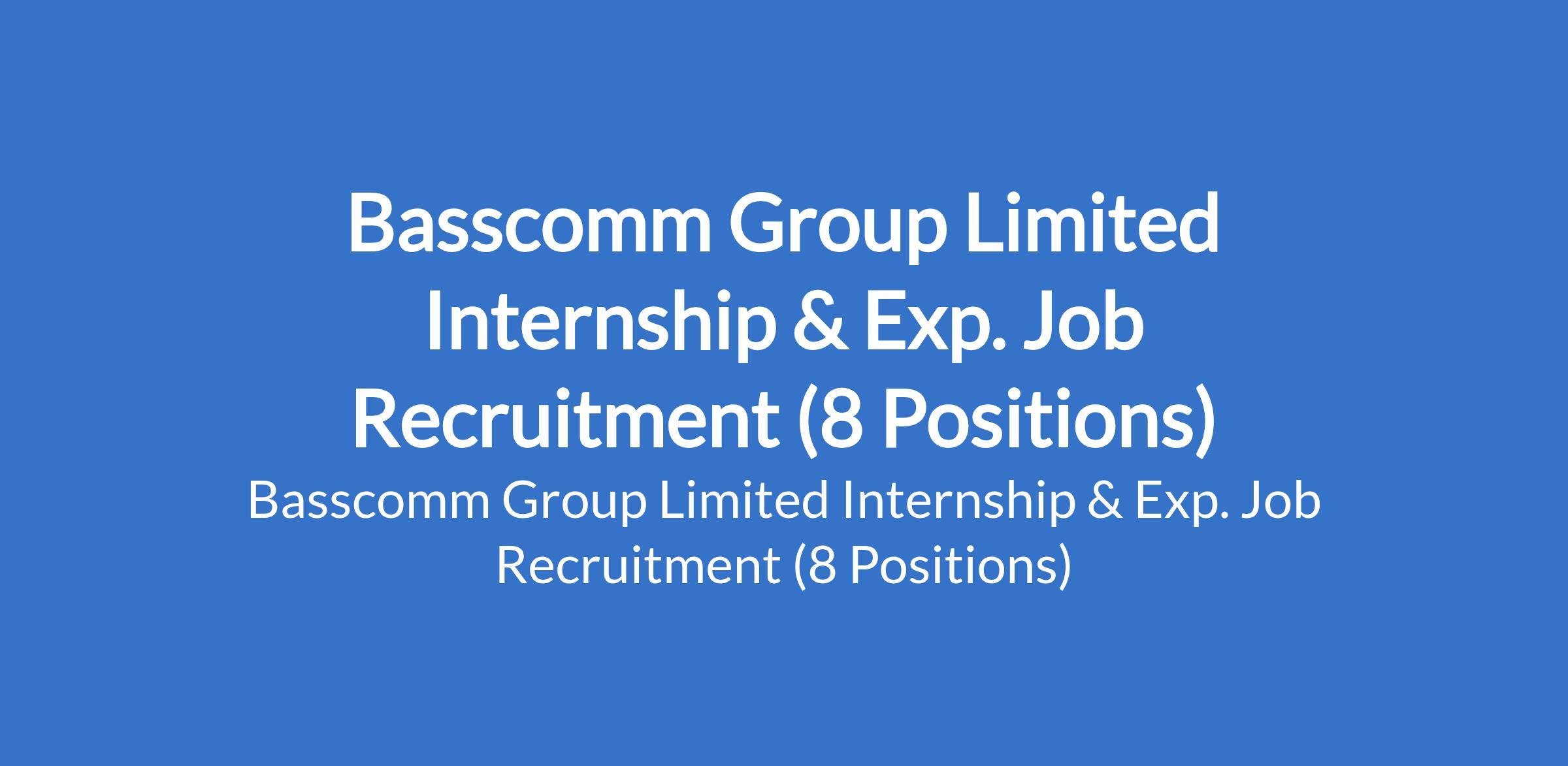 Basscomm Group Limited is recruiting suitably qualified candidates to fill the following internship and experienced positions in Lagos State: Finance Intern, Electrical Design Engineer, Plumber, Procurement Officer, HR Lead, Project Monitoring Officer, Customer Relationship Officer, and BD Electrical Engineer.