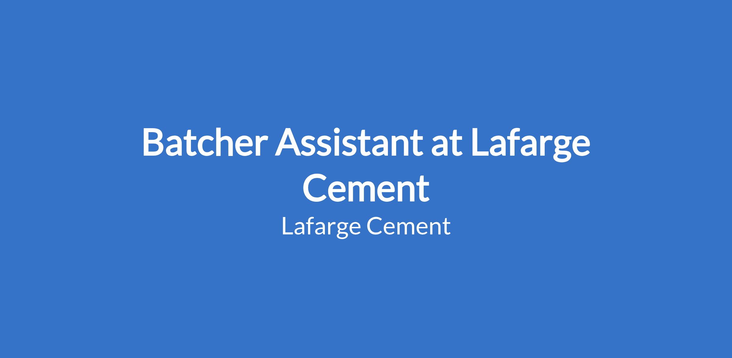 Minimum of 2 years' experience (OND holders) working in a batch plant at a concrete manufacturing plant