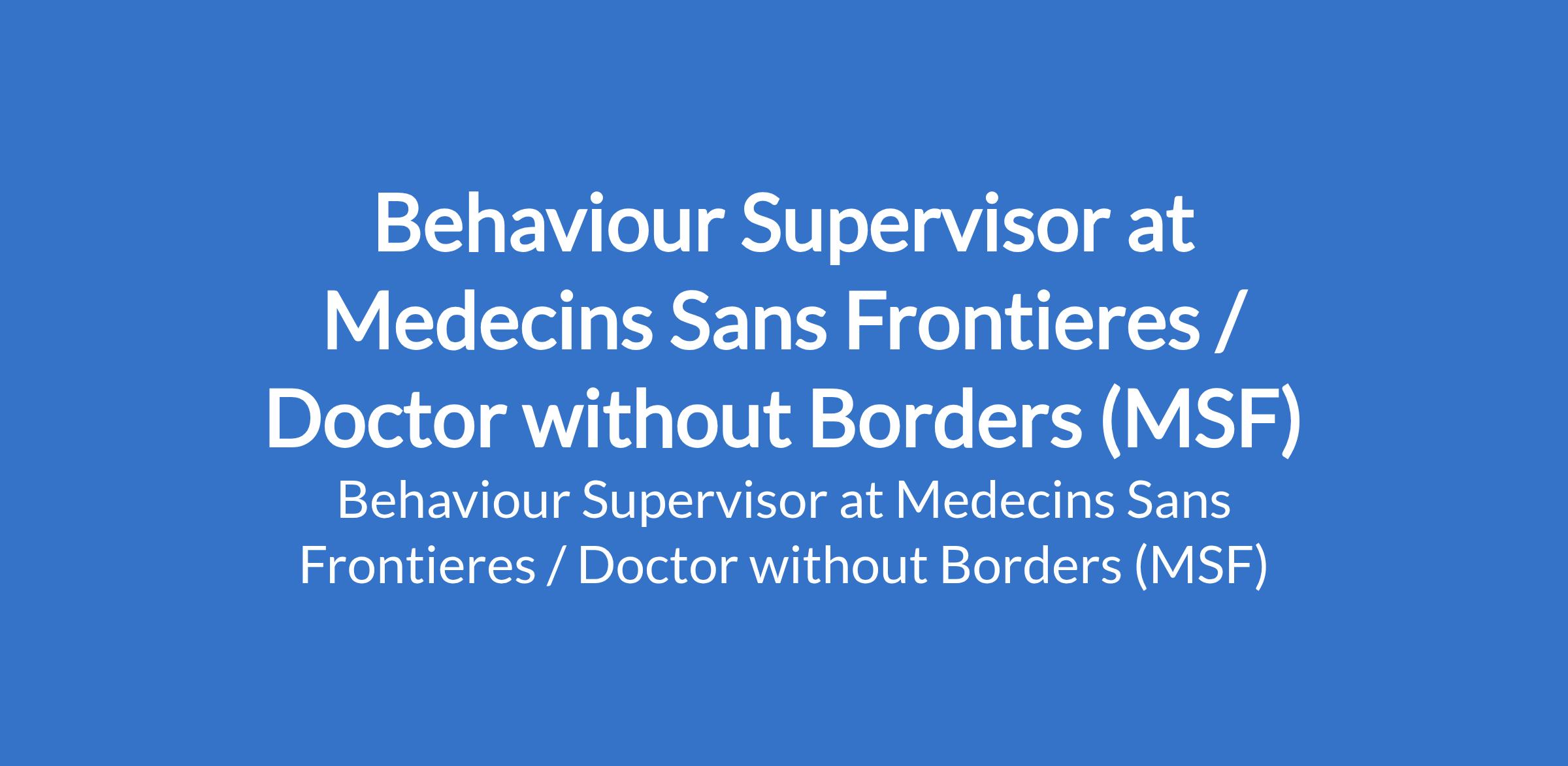 Medecins Sans Frontieres / Doctor without Borders (MSF) is recruiting to fill the position of: Behaviour Supervisor. The position is located in Abuja. Interested candidates should possess a Bachelor's Degree in Social Science, Law, Education or Social Communication with 2 years of experience in the field of safeguarding in an international organization.