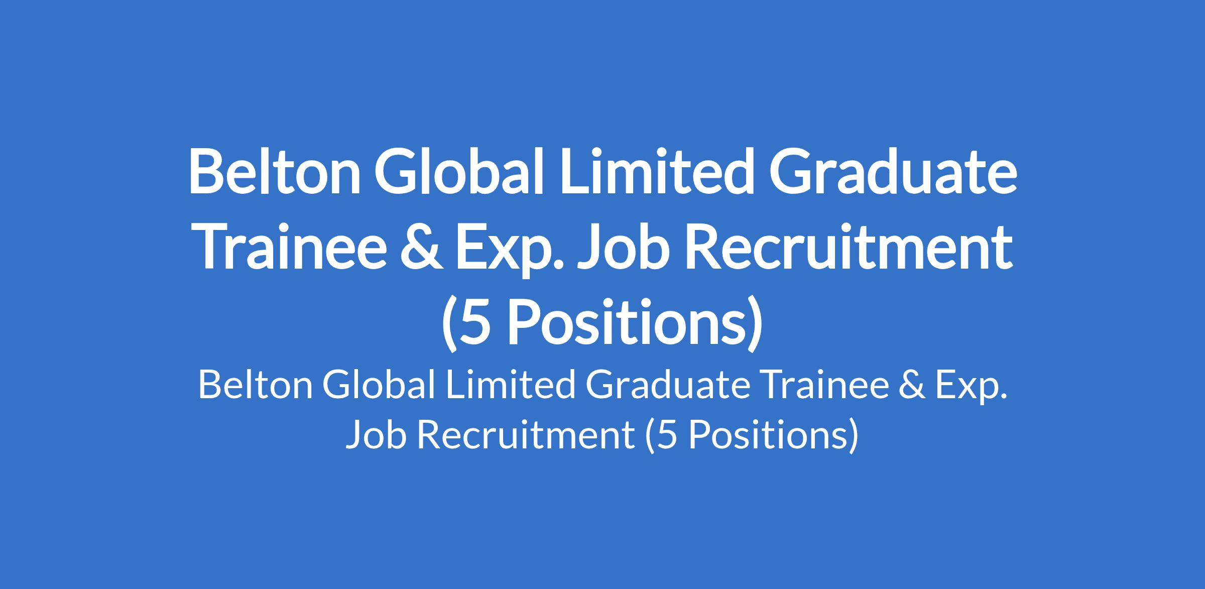Belton Global Limited Graduate Trainee & Exp. Job Recruitment (5 Positions)