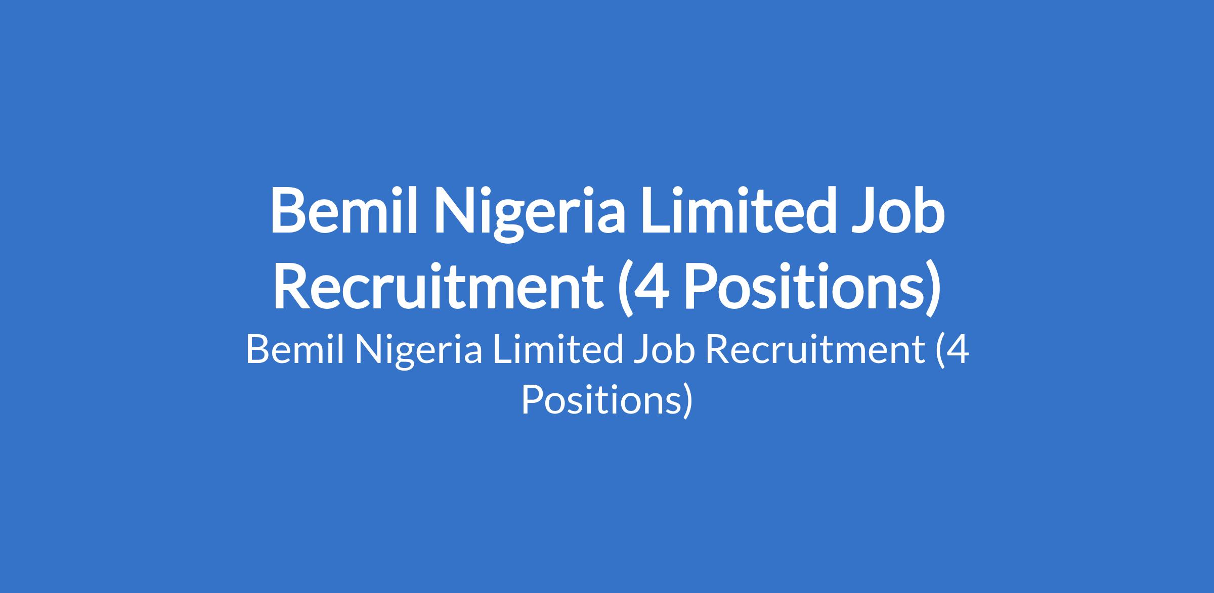 Bemil Nigeria Limited Job Recruitment (4 Positions)