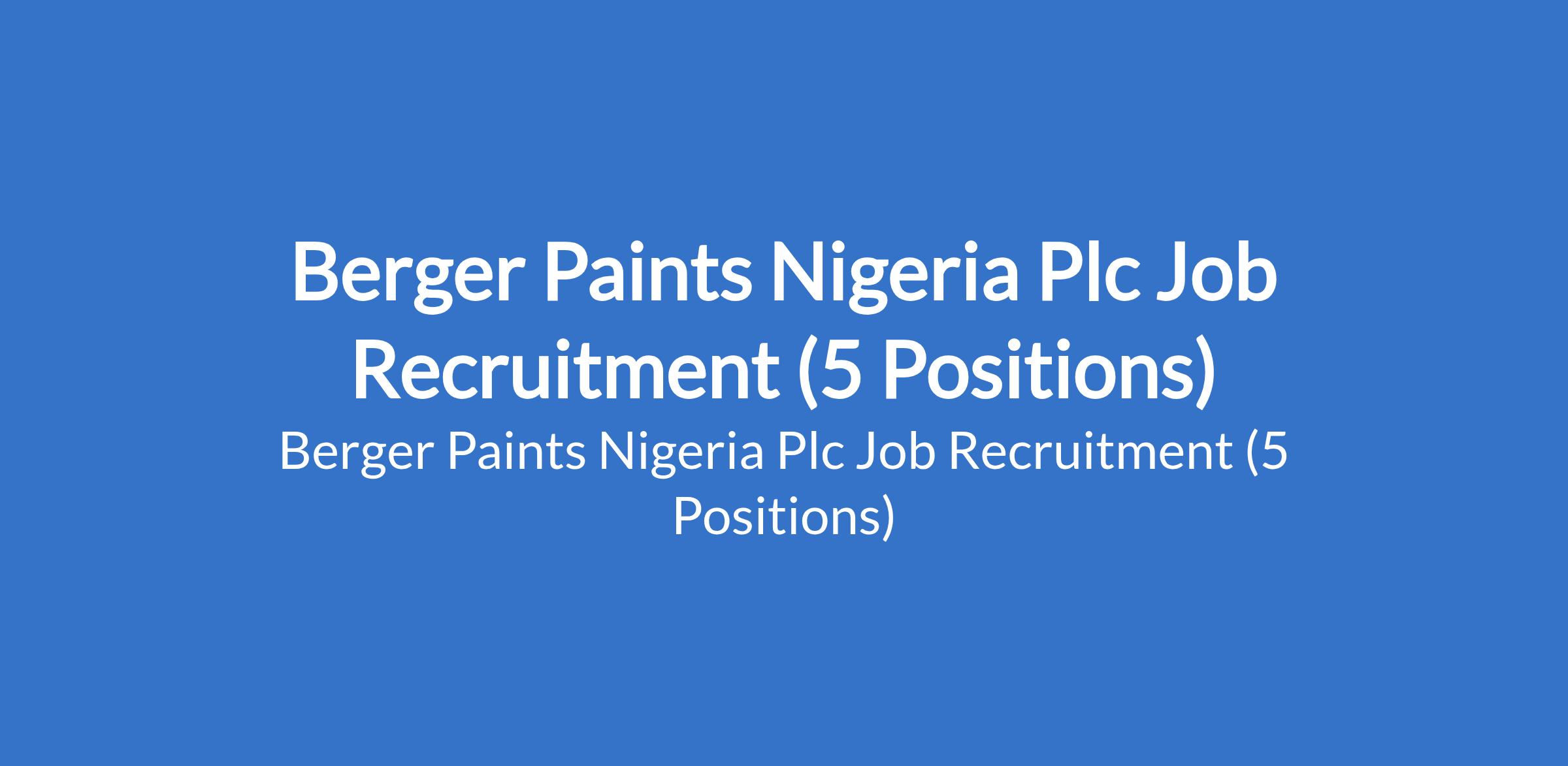 Berger Paints Nigeria Plc Job Recruitment (5 Positions)