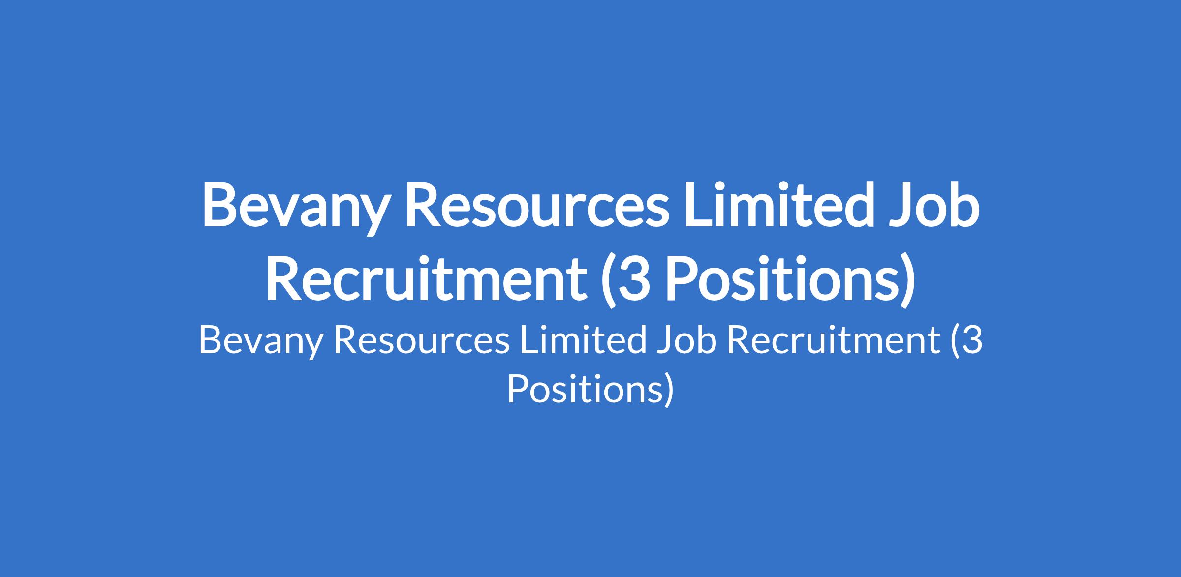 Bevany Resources Limited Job Recruitment (3 Positions)