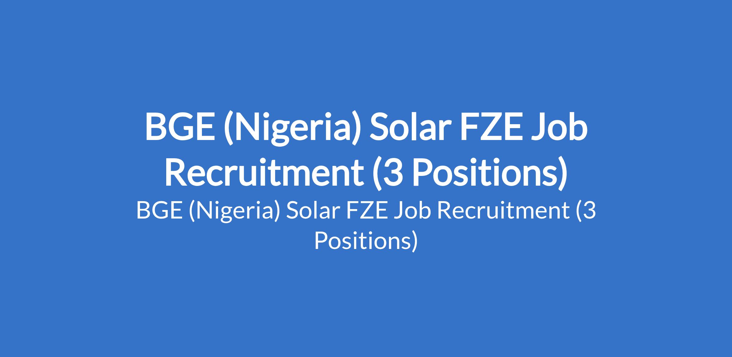 BGE (Nigeria) Solar FZE Job Recruitment (3 Positions)