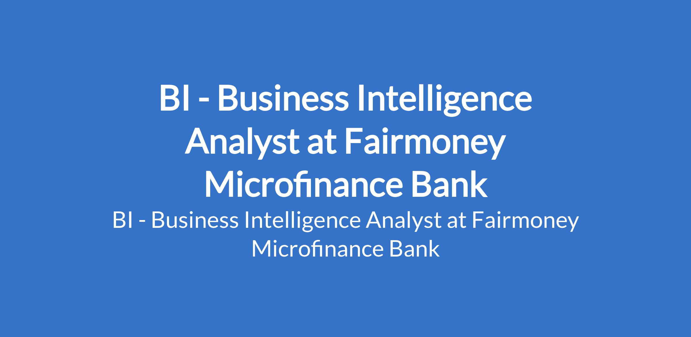 Fairmoney Microfinance Bank is recruiting to fill the position of: BI - Business Intelligence Analyst.The Position is Located in Lagos State. Interested candidates should possess relevant qualifications with 36+ years of experience in Business Intelligence, Data Analytics, or similar role (preferably in fintech, banking, or lending).