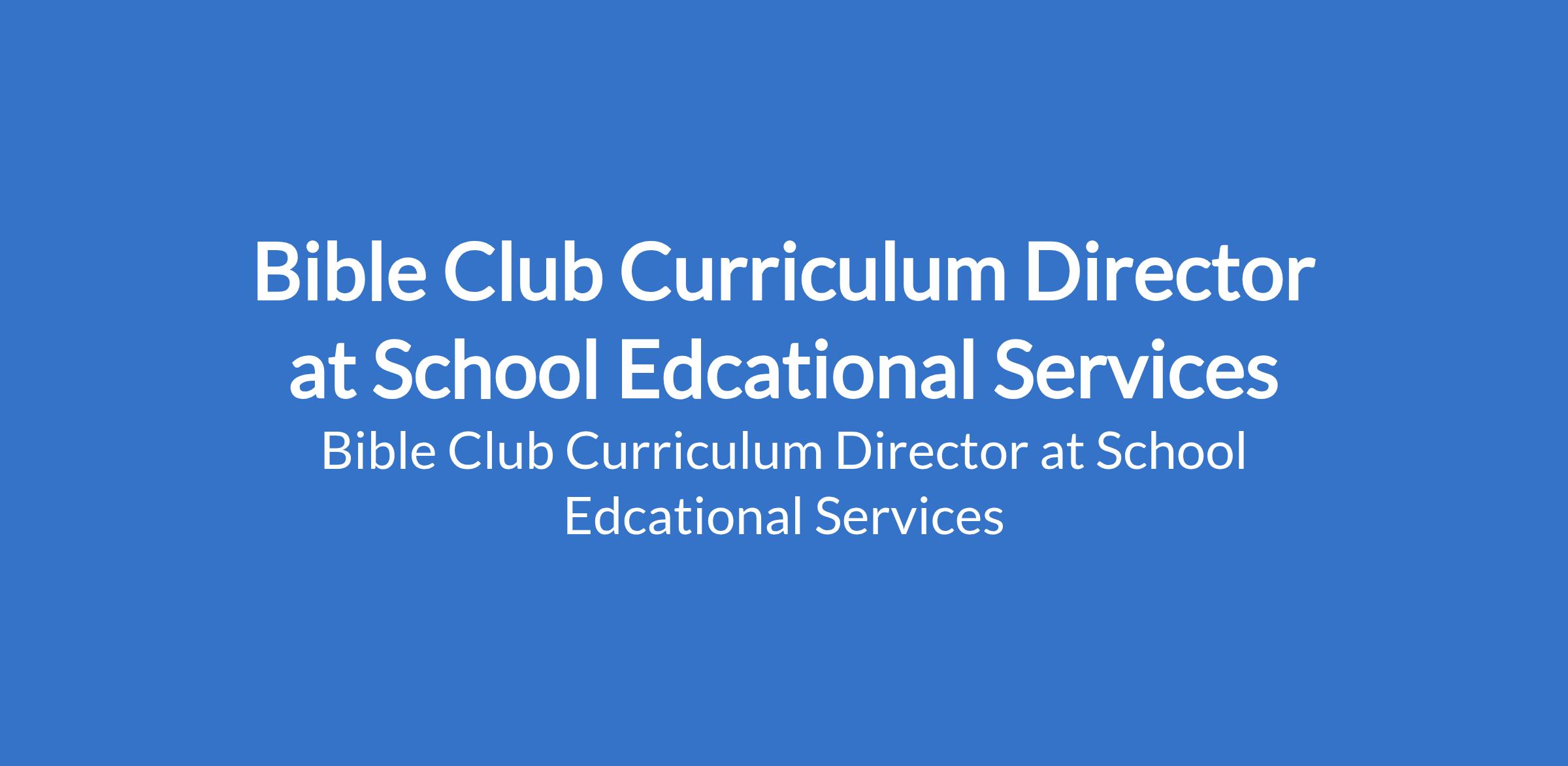 Bible Club Curriculum Director at School Edcational Services