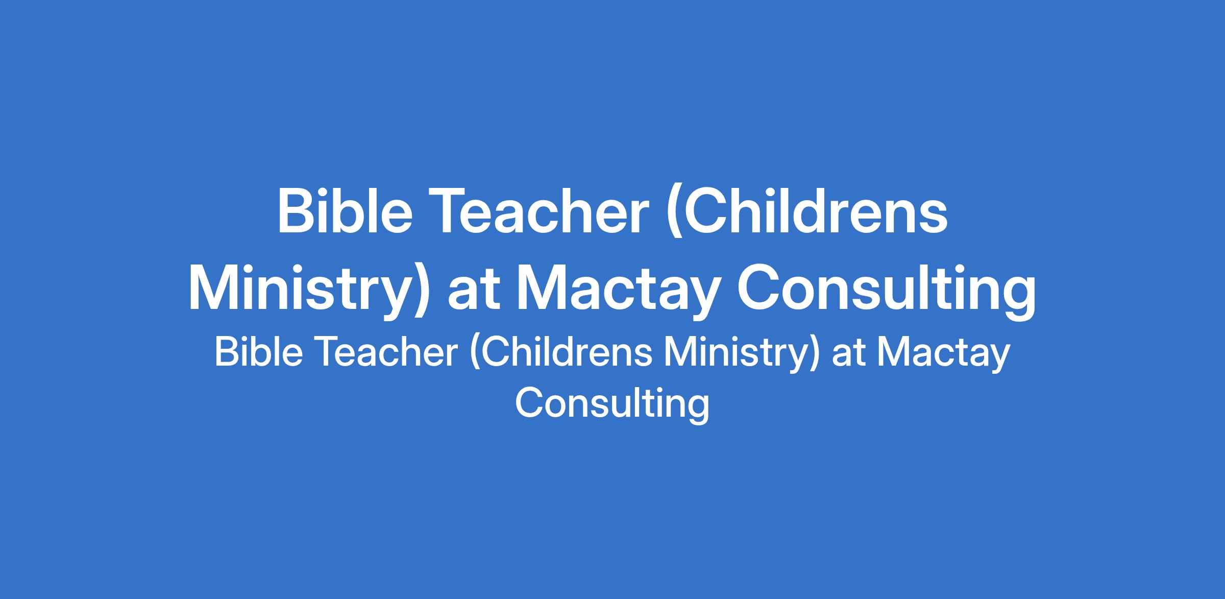 Mactay Consulting is recruiting to fill the position of: Bible Teacher (Childrens Ministry). The position is located in Ikoyi, Lagos State. Salary: N15,000 N20,000 per session. Interested candidates should possess strong knowledge of the Bible and Christian teachings, and should reside in or can easily commute to Ikoyi.