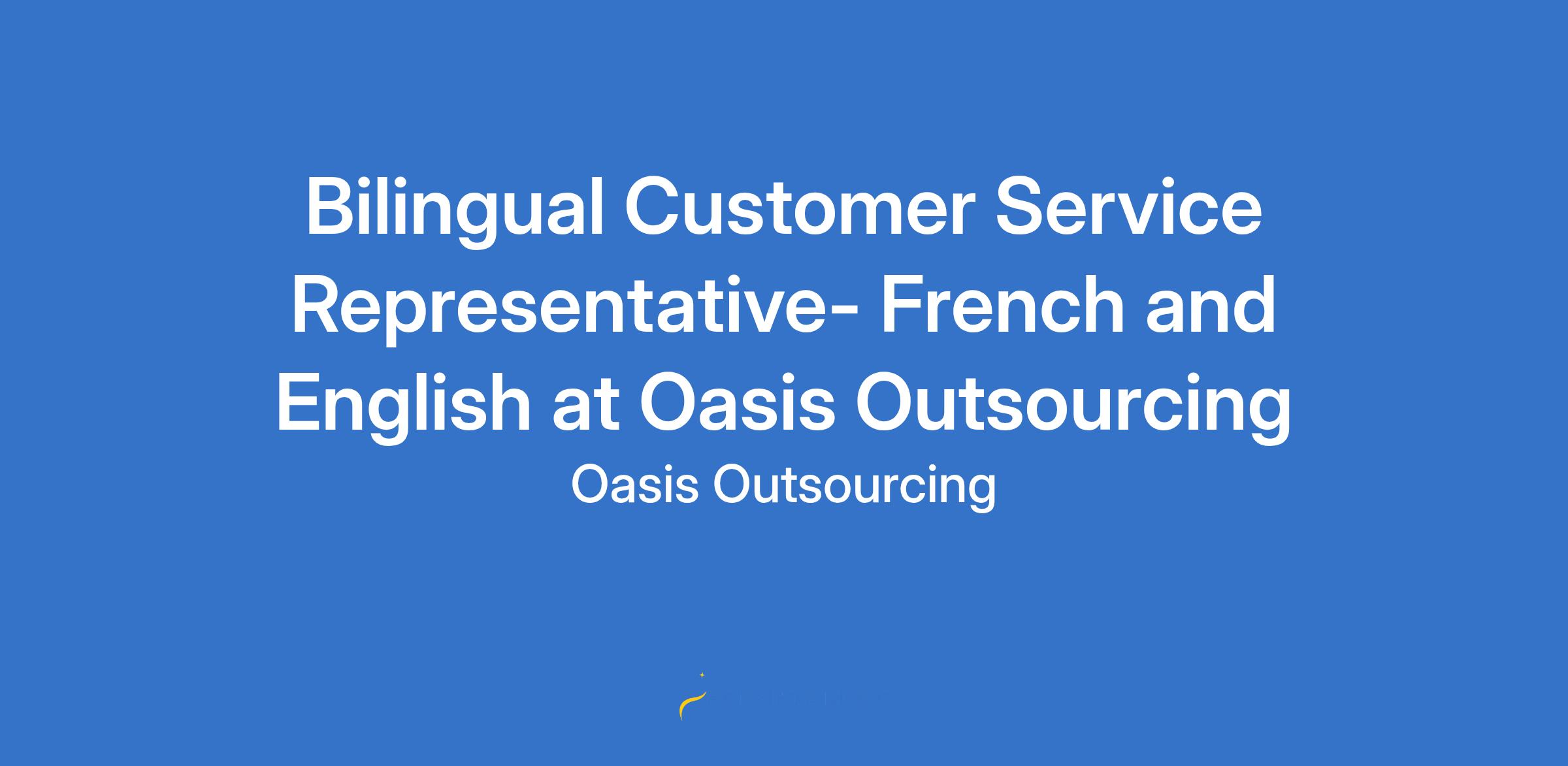 Bilingual Customer Service Representative- French and English at Oasis Outsourcing