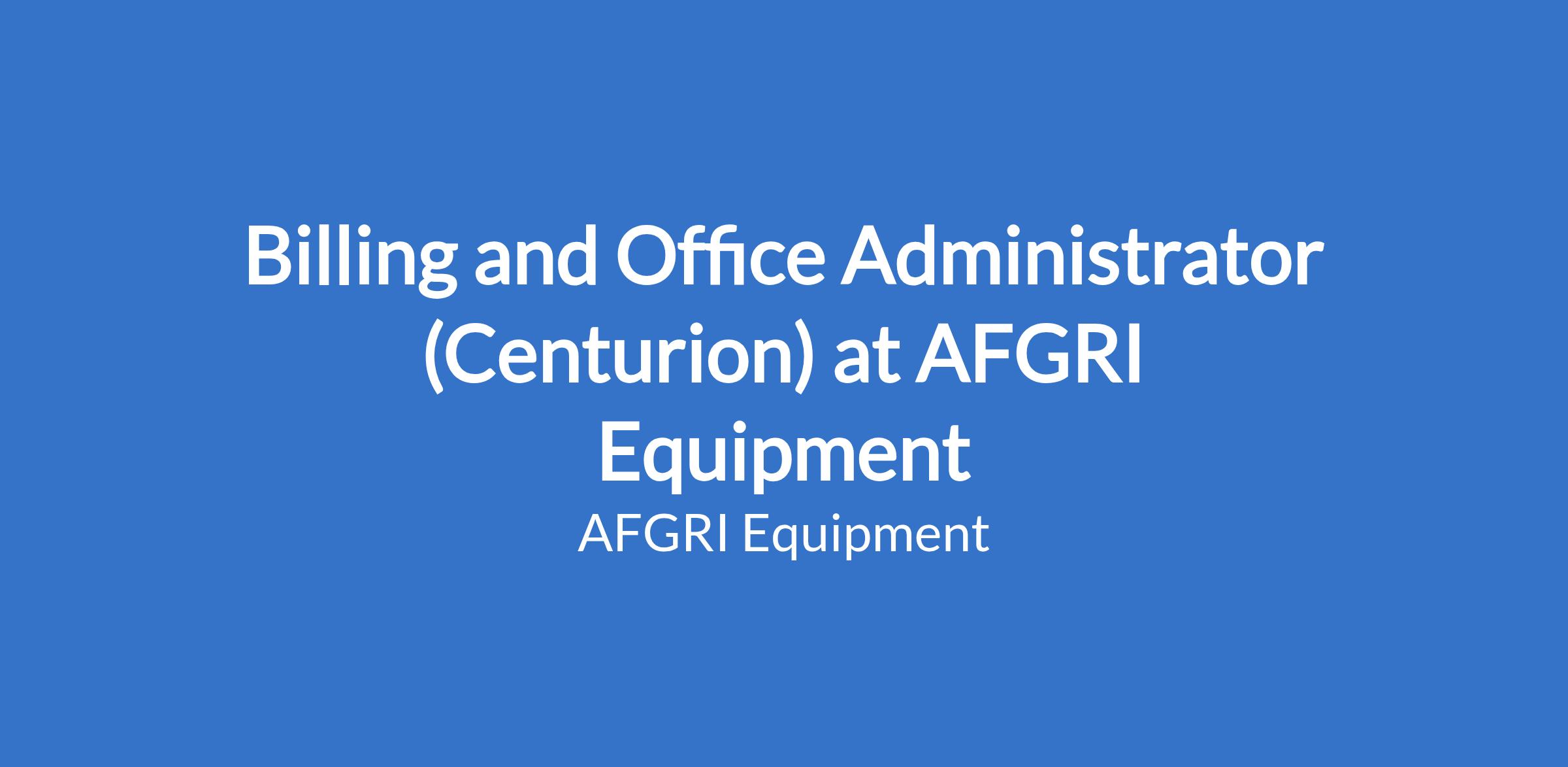 Billing and Office Administrator (Centurion) at AFGRI Equipment