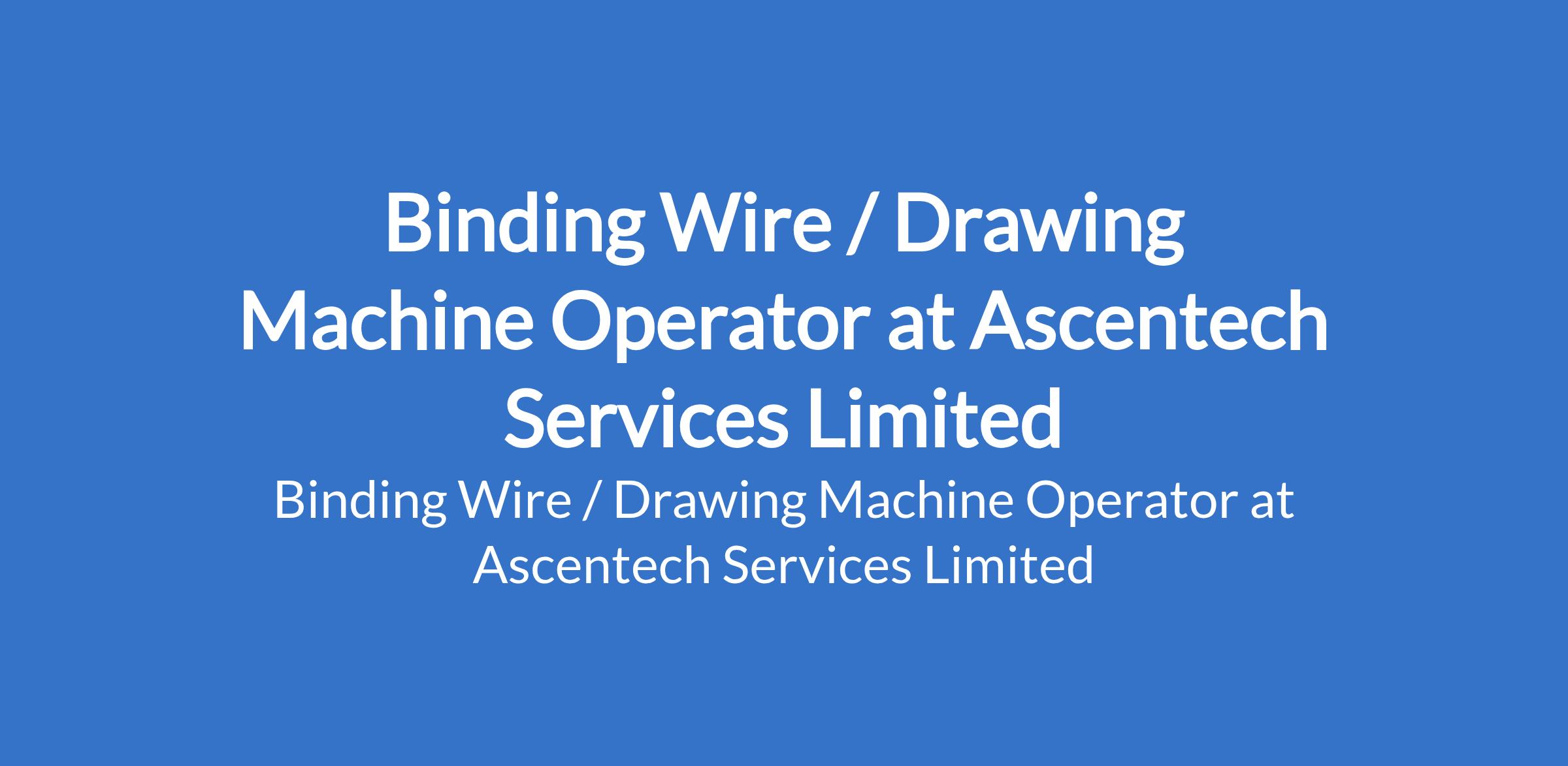 Ascentech Services Limited is recruiting to fill the position of: Binding Wire / Drawing Machine Operator. The position is located in Sagamu, Ogun State. Salary: N100,000 - N130,000 / month. Interested candidates should possess an SSCE / OND or relevant technical qualification with 2 years experience in operating wire drawing or similar industrial machines.