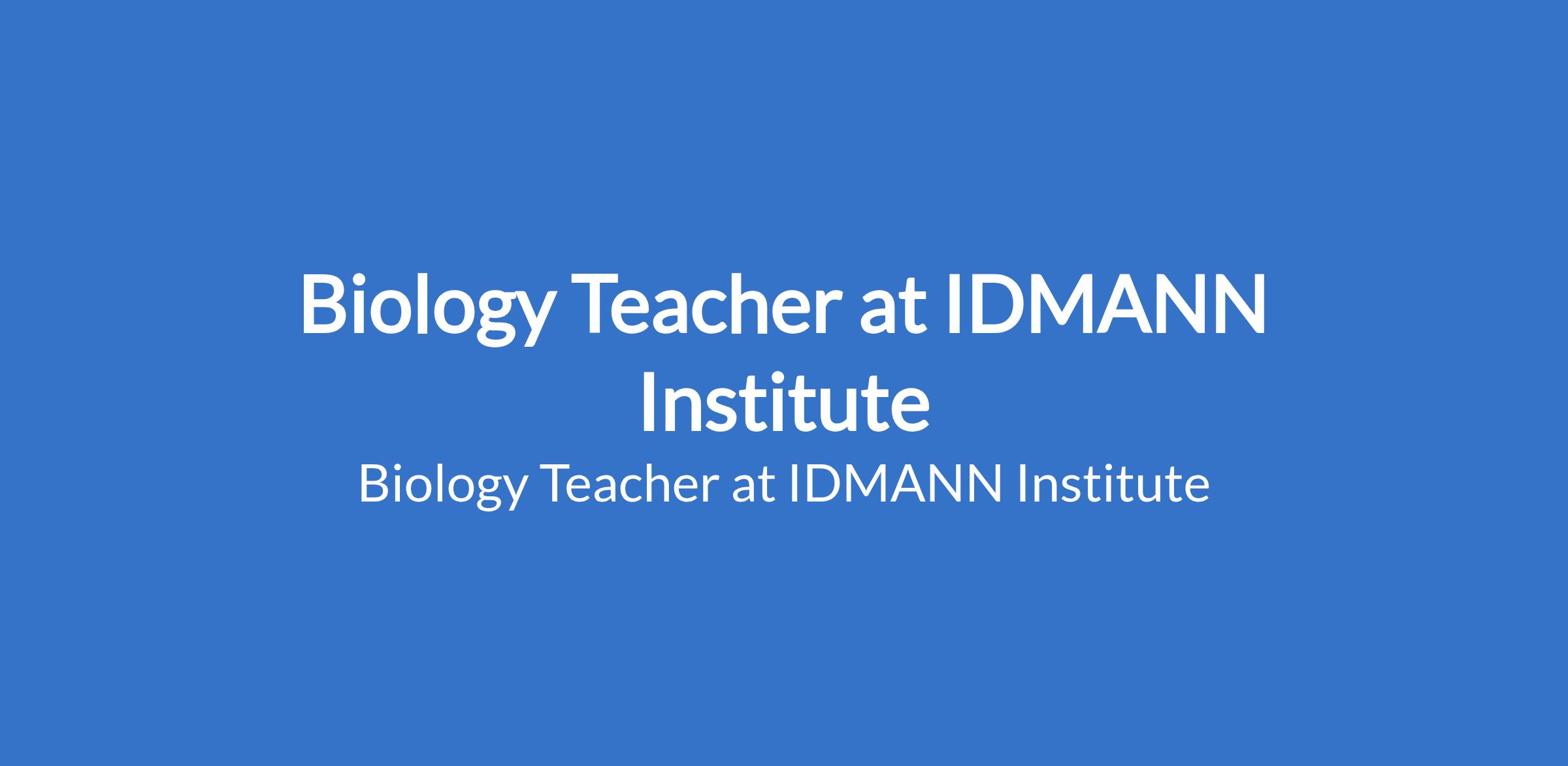 IDMANN Institute is recruiting to fill the position of: Biology Teacher. The position is located in Aba, Abia State. Interested candidates should possess minimum of a Bachelors Degree (B.Sc / B.Ed) in Biology, Biological Sciences, Biology Education or a related field with 23 years teaching experience.