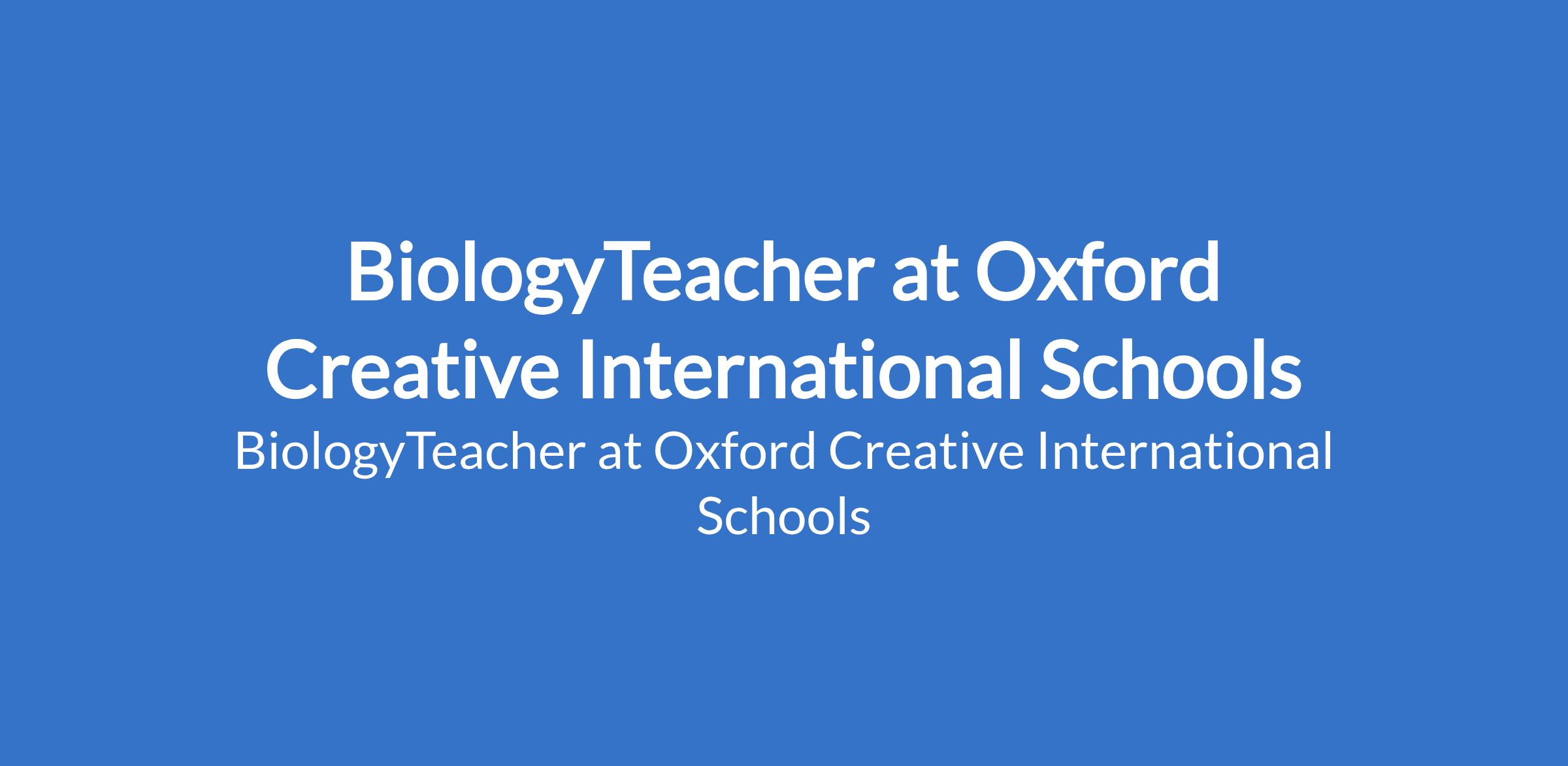 Oxford Creative International Schools is recruiting to fill the position of: BiologyTeacher. The position is located in Iyiowa Odekpe, Anambra State. Interested candidates should possess a relevant educational qualification (B.Ed, B.Sc(Ed), B.A(Ed), or a related Degree) with experience.