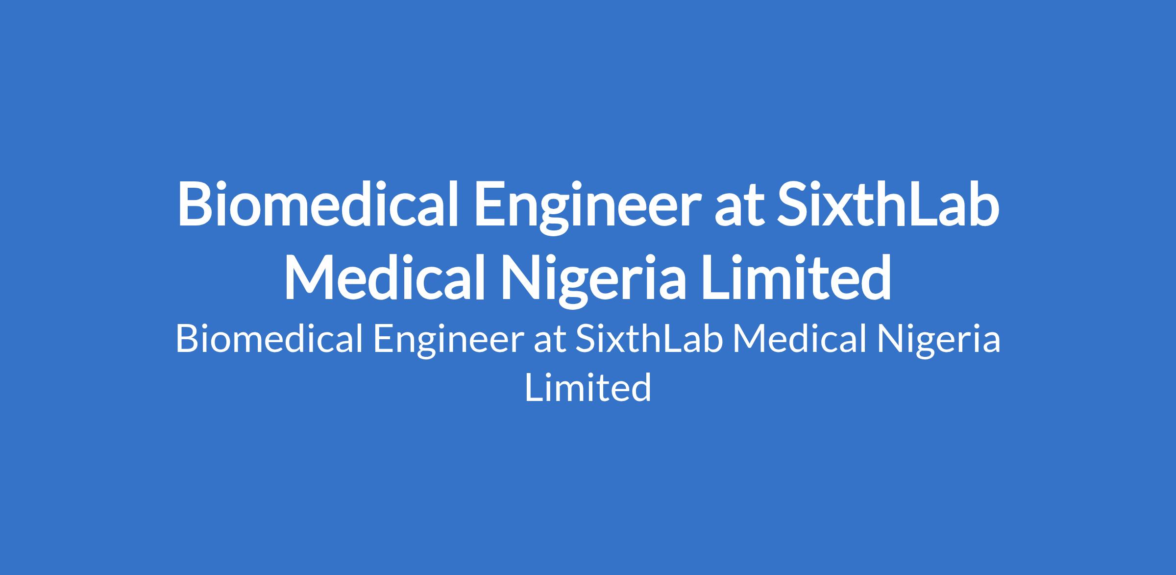 SixthLab Medical Nigeria Limited is recruiting to fill the position of: Biomedical Engineer. The position is located in Lagos State. Salary: N120,000 - N140,000 monthly. Interested candidates should possess a B.Sc Degree / HND in Biomedical Engineering, Biomedical Technology, Electrical / Electronic Engineering, or related fields with 5 7 years strong practical experience in biomedical equipment installation, calibration, and maintenance.