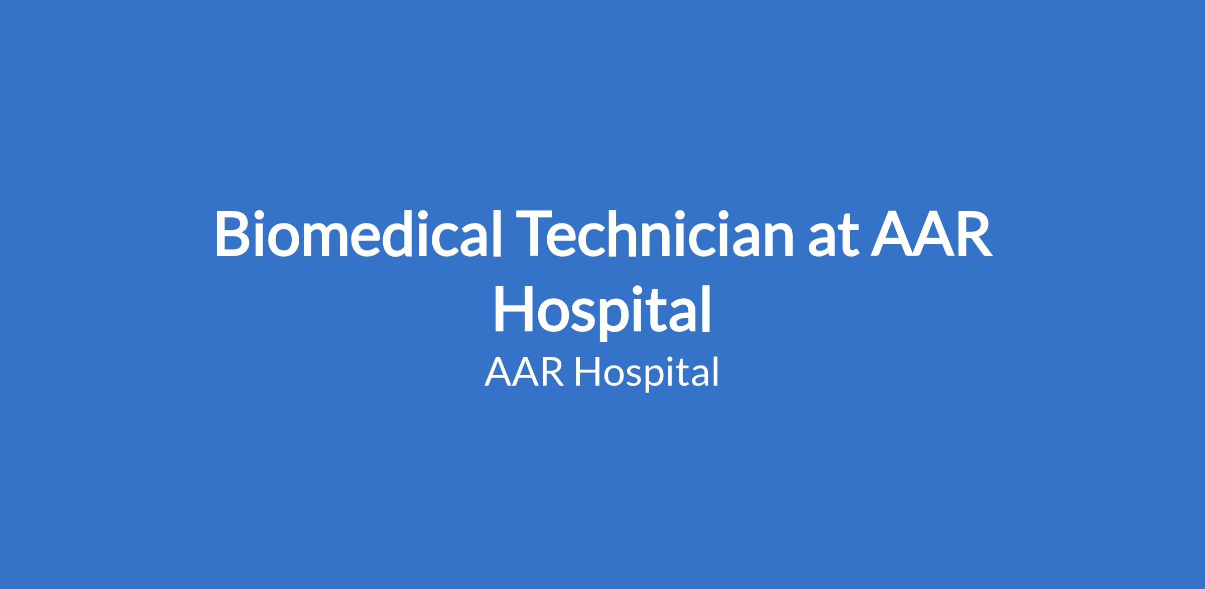 Job Purpose: Responsible for ensuring proper functioning, safety and sound condition of all medical equipment in the Hospital and that they are in optimum working condition and available for use at all times amongst the following other responsibilities.