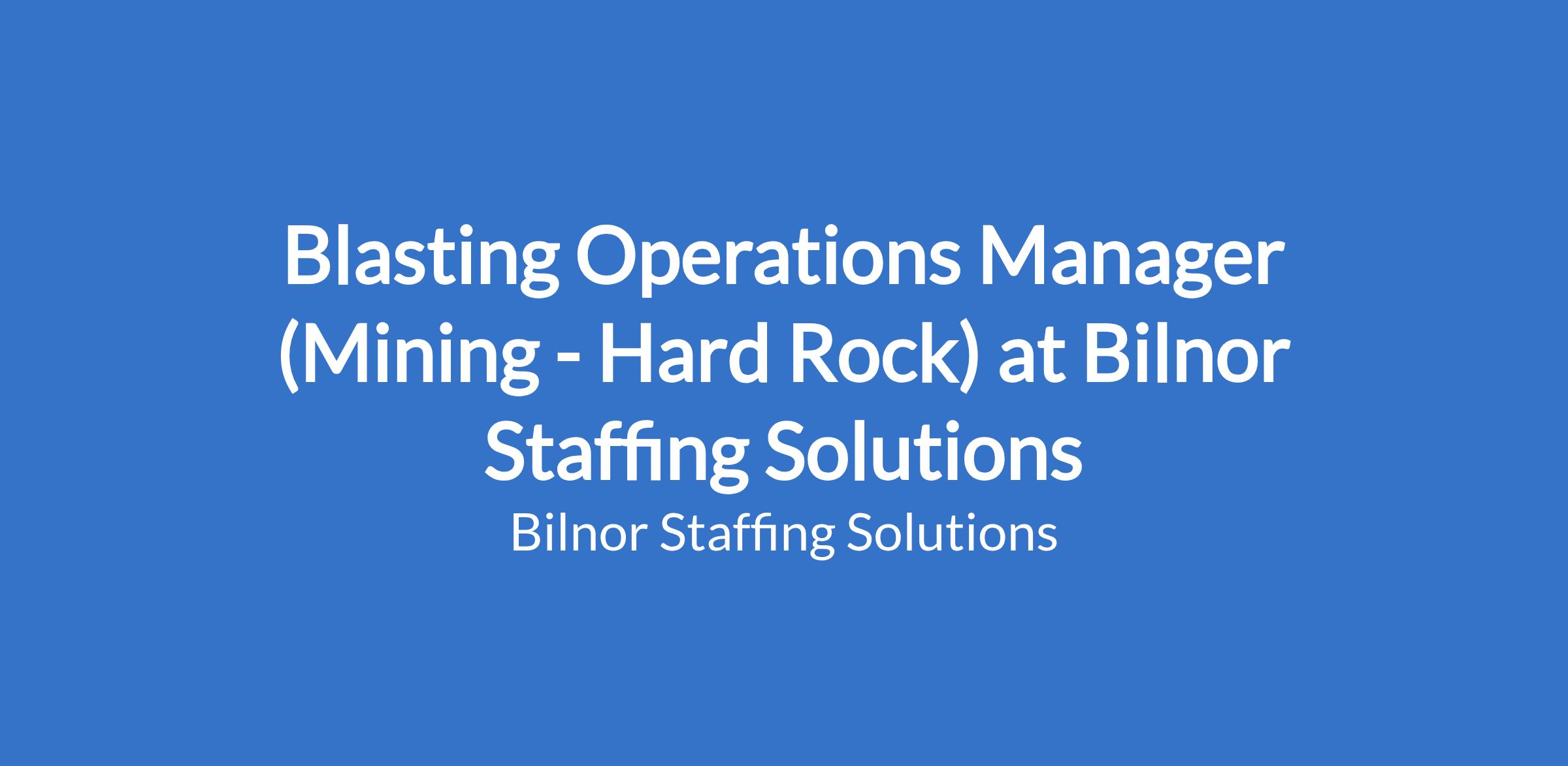 Bilnor Staffing Solutions client in the mining sector is looking for a BLASTING OPERATIONS MANAGER to join their team.