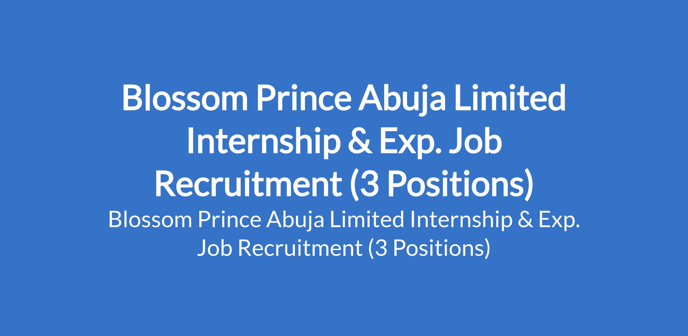 Blossom Prince Abuja Limited Internship & Exp. Job Recruitment (3 Positions)