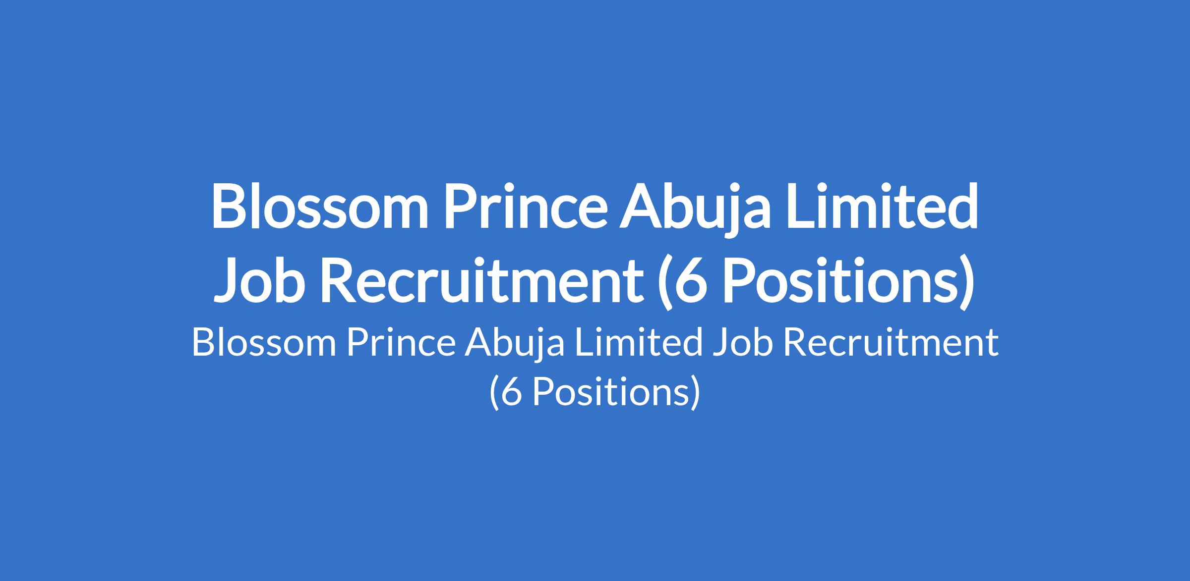 Blossom Prince Abuja Limited is currently recruiting suitably qualified candidates to fill the following positions in Lagos and Ogun States: Coordinator, Human Resource Manager, Data Analyst, Business Development Manager, Logistic Officer, and Audit Officer.