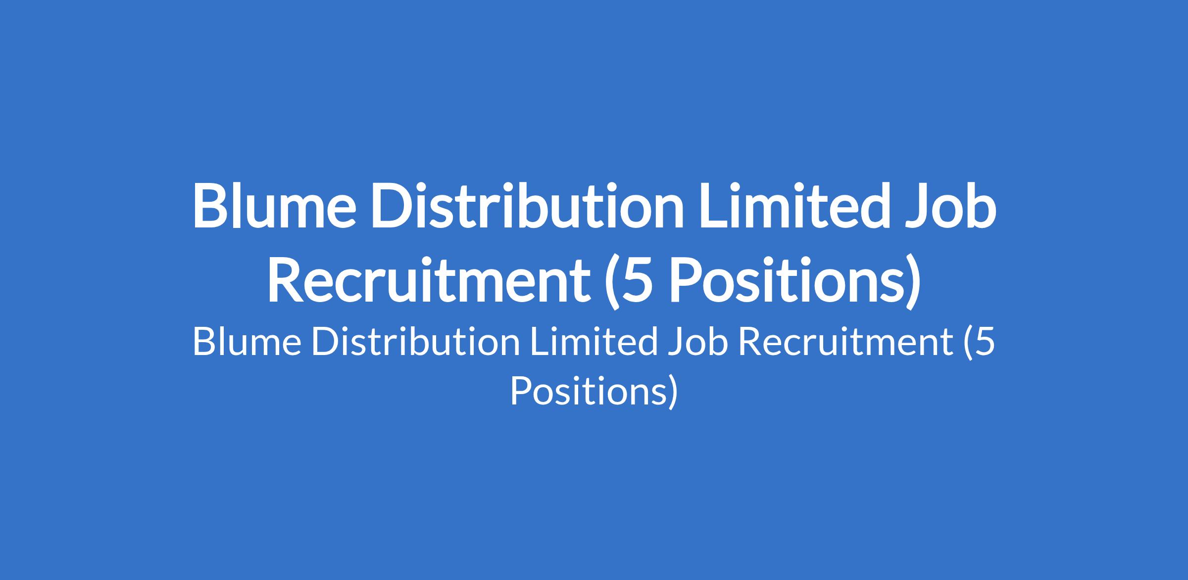 Blume Distribution Limited is recruiting suitable candidates to fill the following positions in Abuja, Niger, kwara, Ogun and Lagos State: Regional Trade Marketing Executive; Area Sales Officer; Van Sales Representative (VSR); and Warehouse Loading Supervisor (Lagos); and Warehouse Loading Supervisor (Ogun).