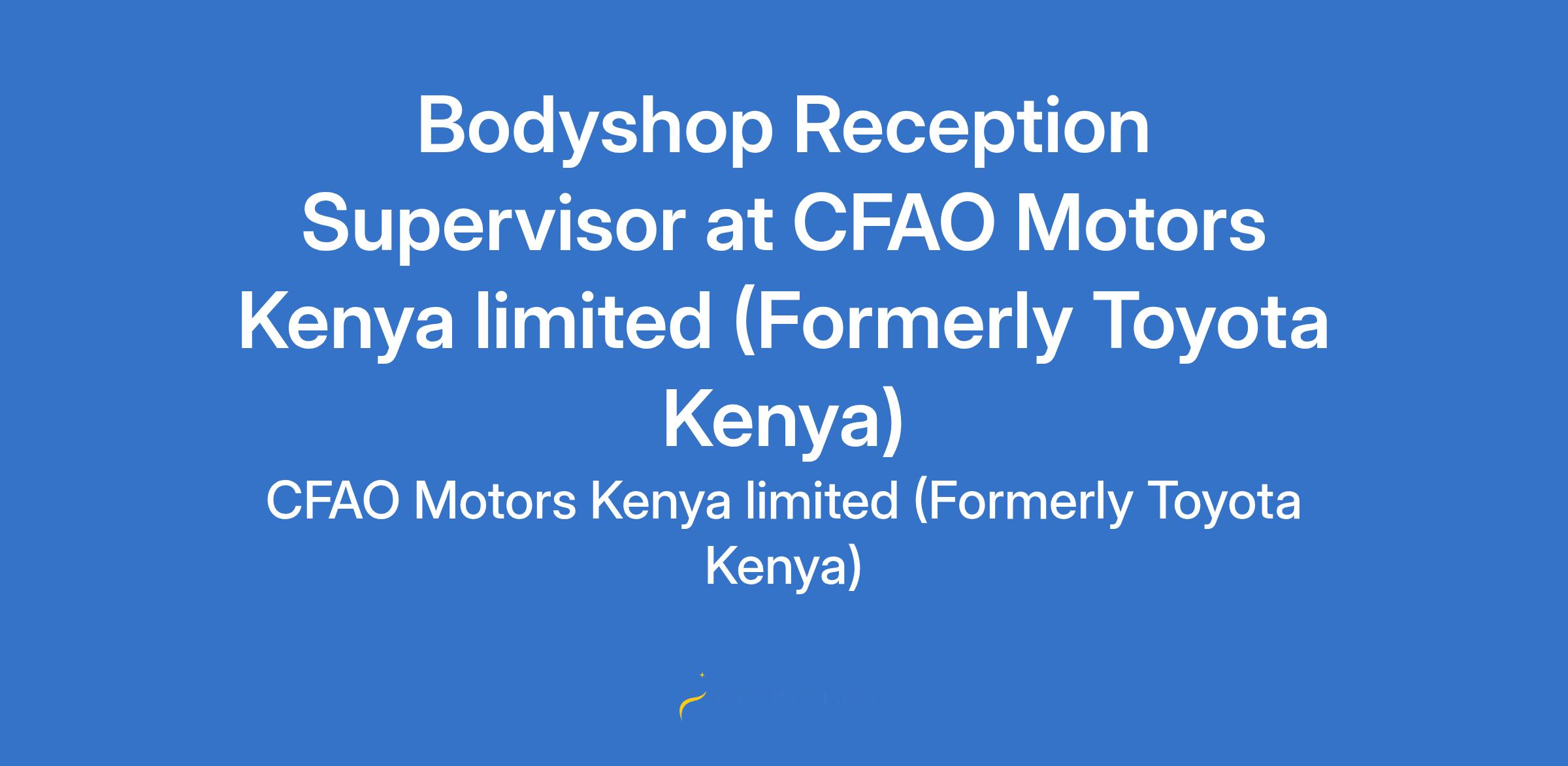 We are looking to fill the position of the Bodyshop Reception Supervisor. The role reports to the Bodyshop Manager and will be based in Nairobi - Bodyshop along Lusaka Road.