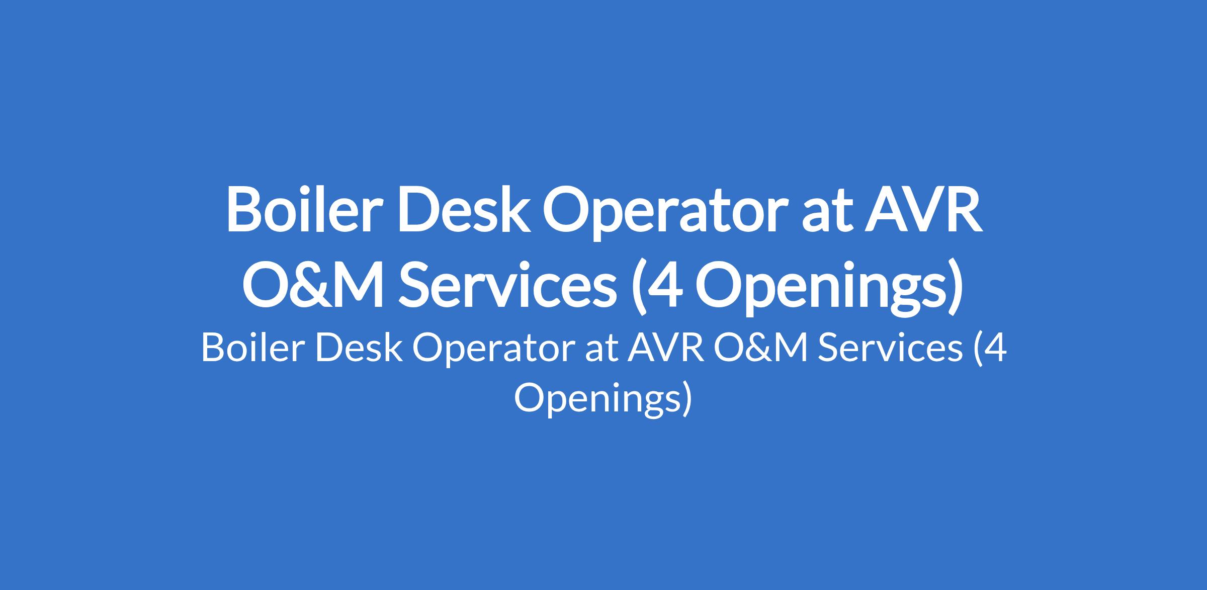 AVR O&M Services is recruiting to fill the position of: Boiler Desk Operator. The position is located in Kano State. Interested candidates should possess a relevant qualification with at least 5 years experience in operation & Management (O&M) in power plant.