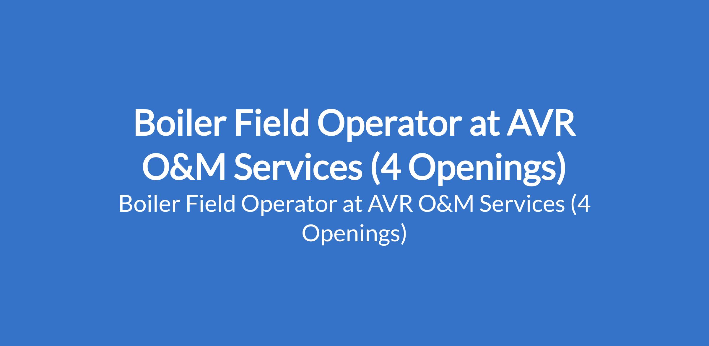 AVR O&M Services is recruiting to fill the position of: Boiler Field Operator. The position is located in Kano State. Interested candidates should possess a relevant qualification with at least 5 years experience in operation & Management (O&M) in power plant.