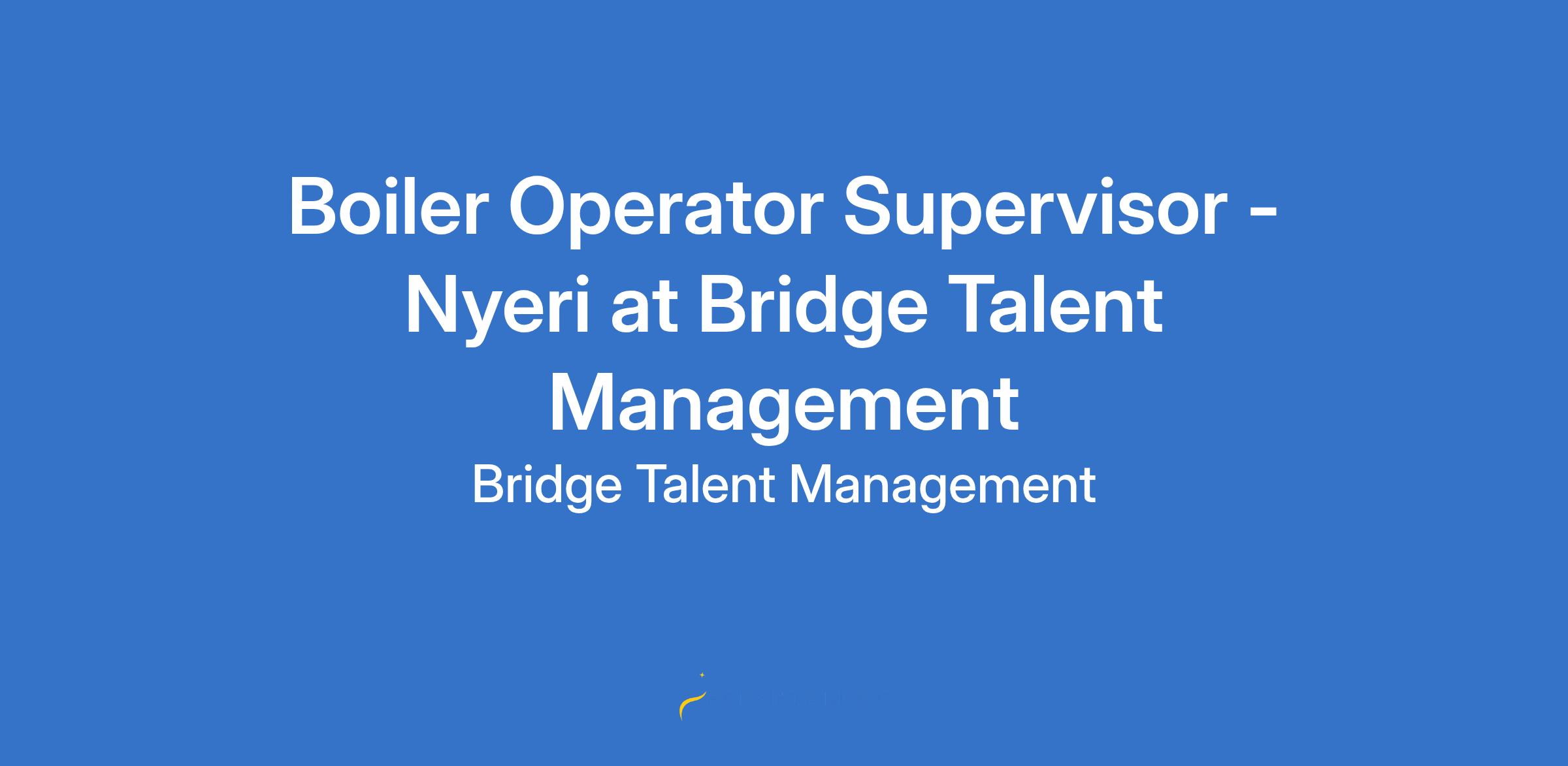 Boiler Operator Supervisor - Nyeri at Bridge Talent Management