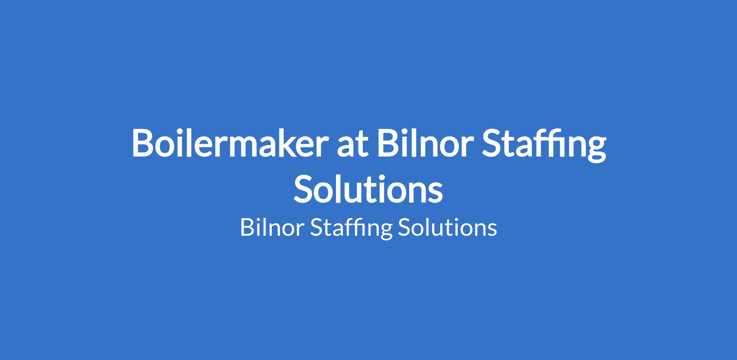 Bilnor Staffing Solutions' client is seeking experienced Boilermaker for position in Nelspruit, MP.