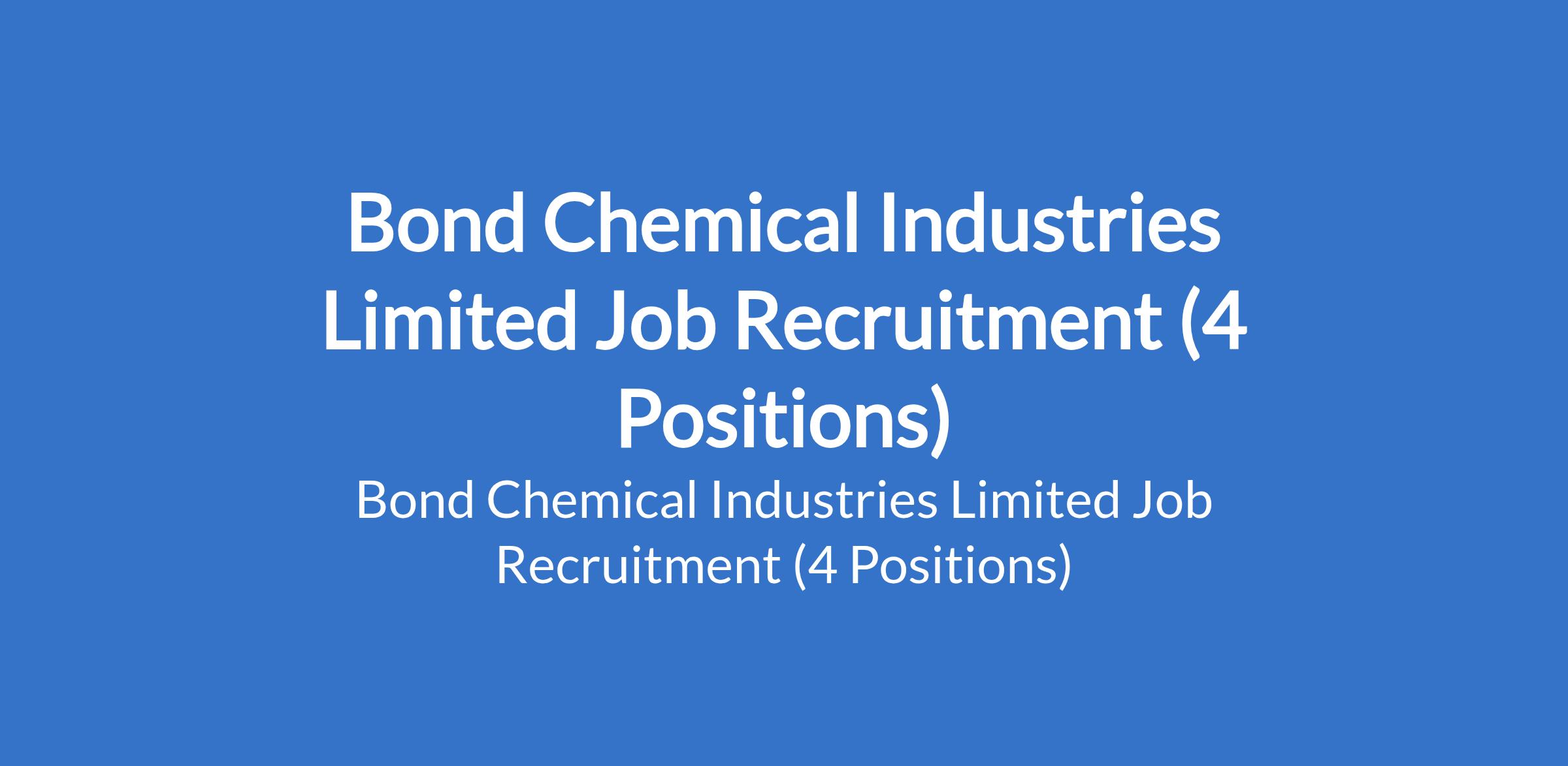 Bond Chemical Industries Limited Job Recruitment (4 Positions)