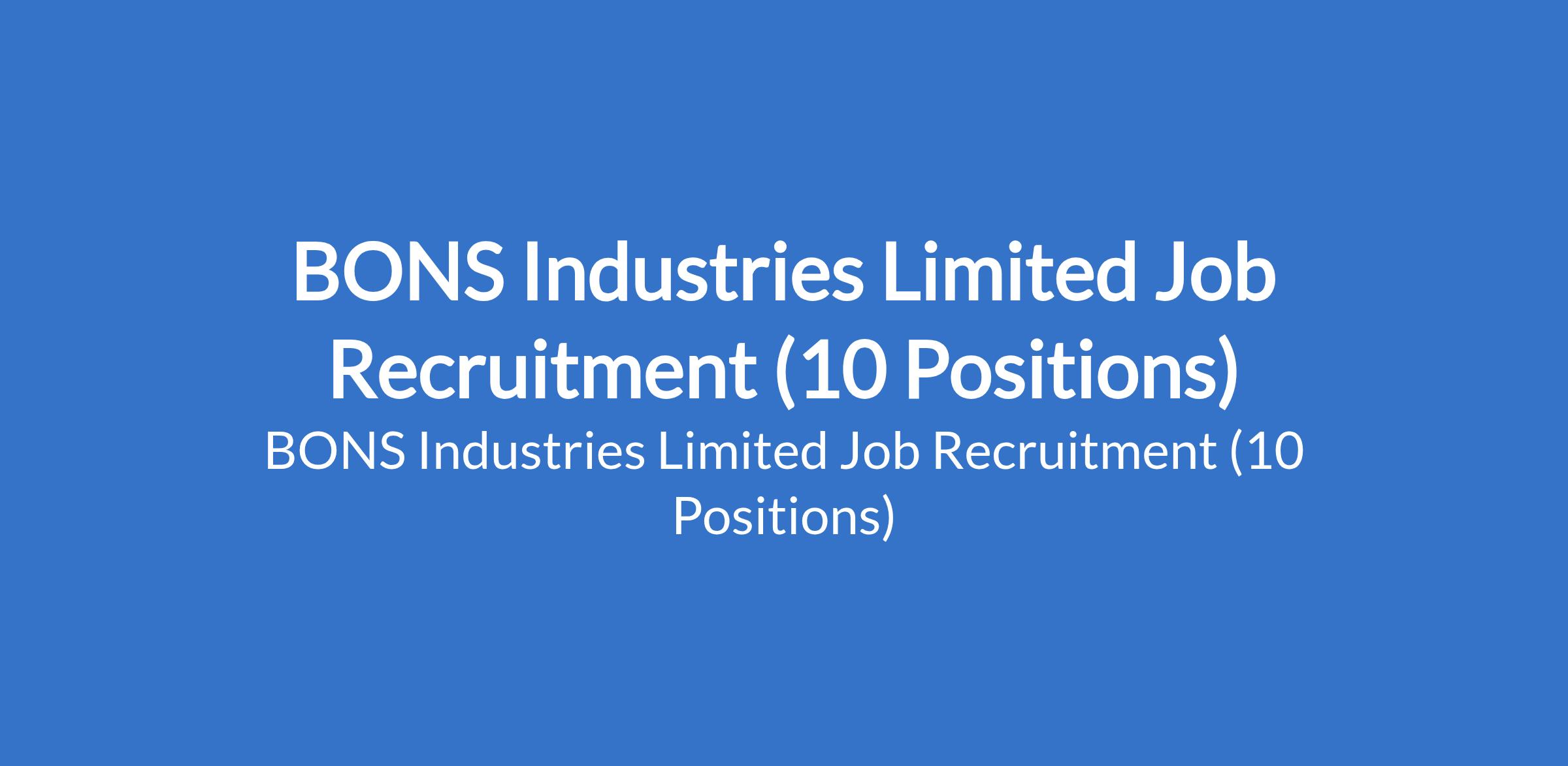 BONS Industries Limited is currently recruiting suitably qualified candidates to fill the following positions in Abia, Anambra, Enugu and Lagos States: Sales / Customer Service Representative; Van Sales Personnel; Van Sales Executive / Business Developer; Area Sales Manager; Sales / Account Officer, Admin / Logistics Officer, Account Supervisor, Senior Accountant, Quality Control Officer, and Assistant Secretary / Admin.