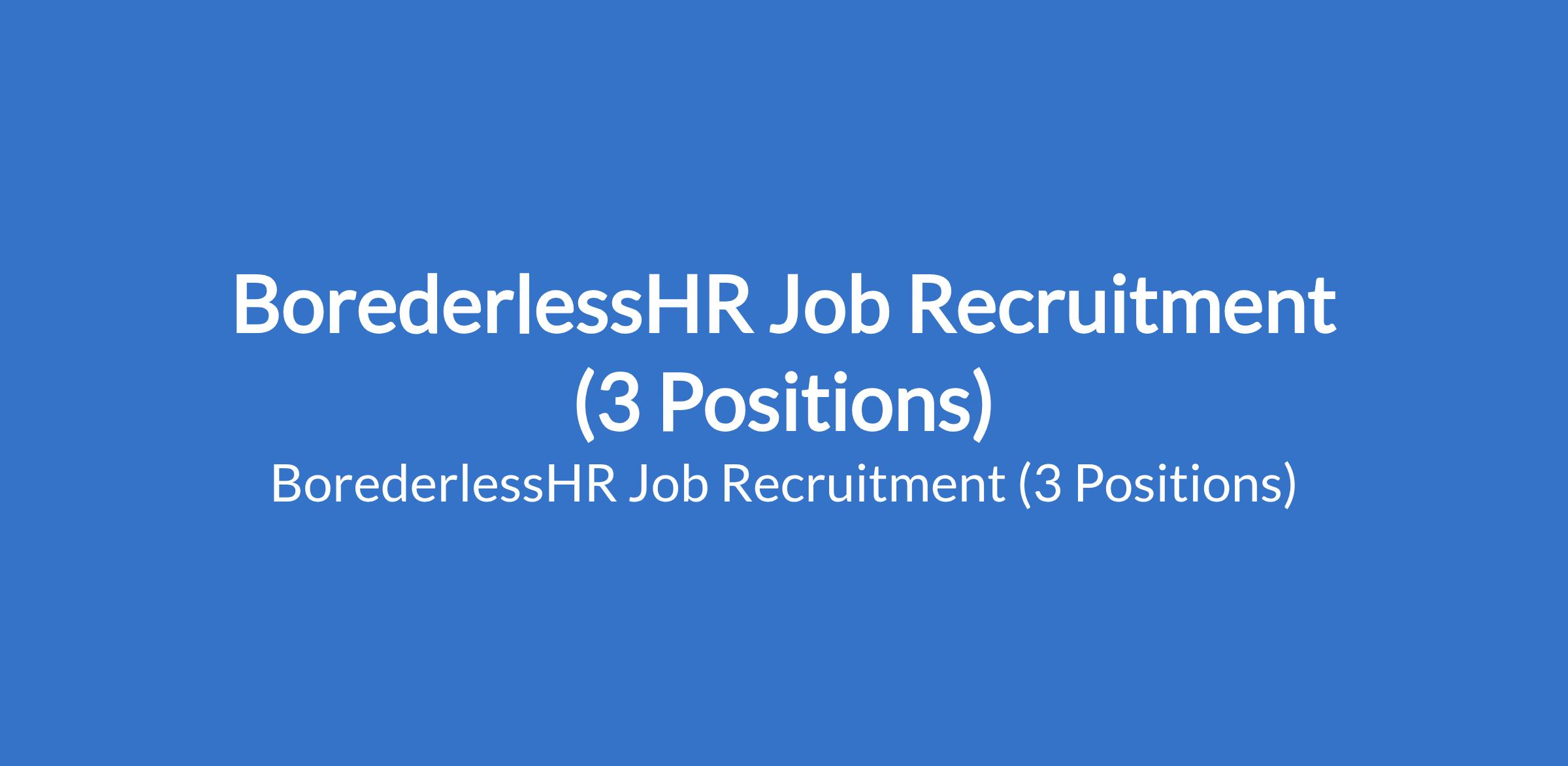 BorederlessHR Job Recruitment (3 Positions)