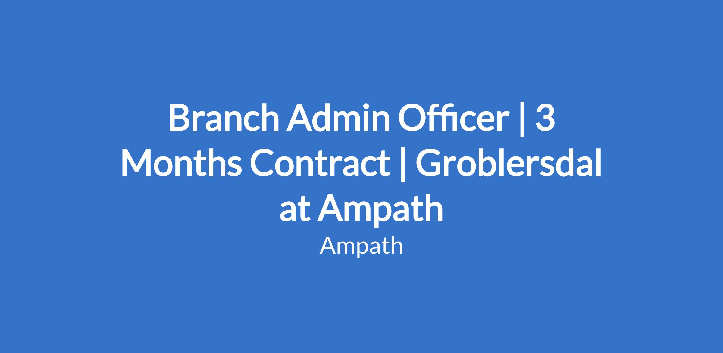 Branch Admin Officer | 3 Months Contract | Groblersdal at Ampath