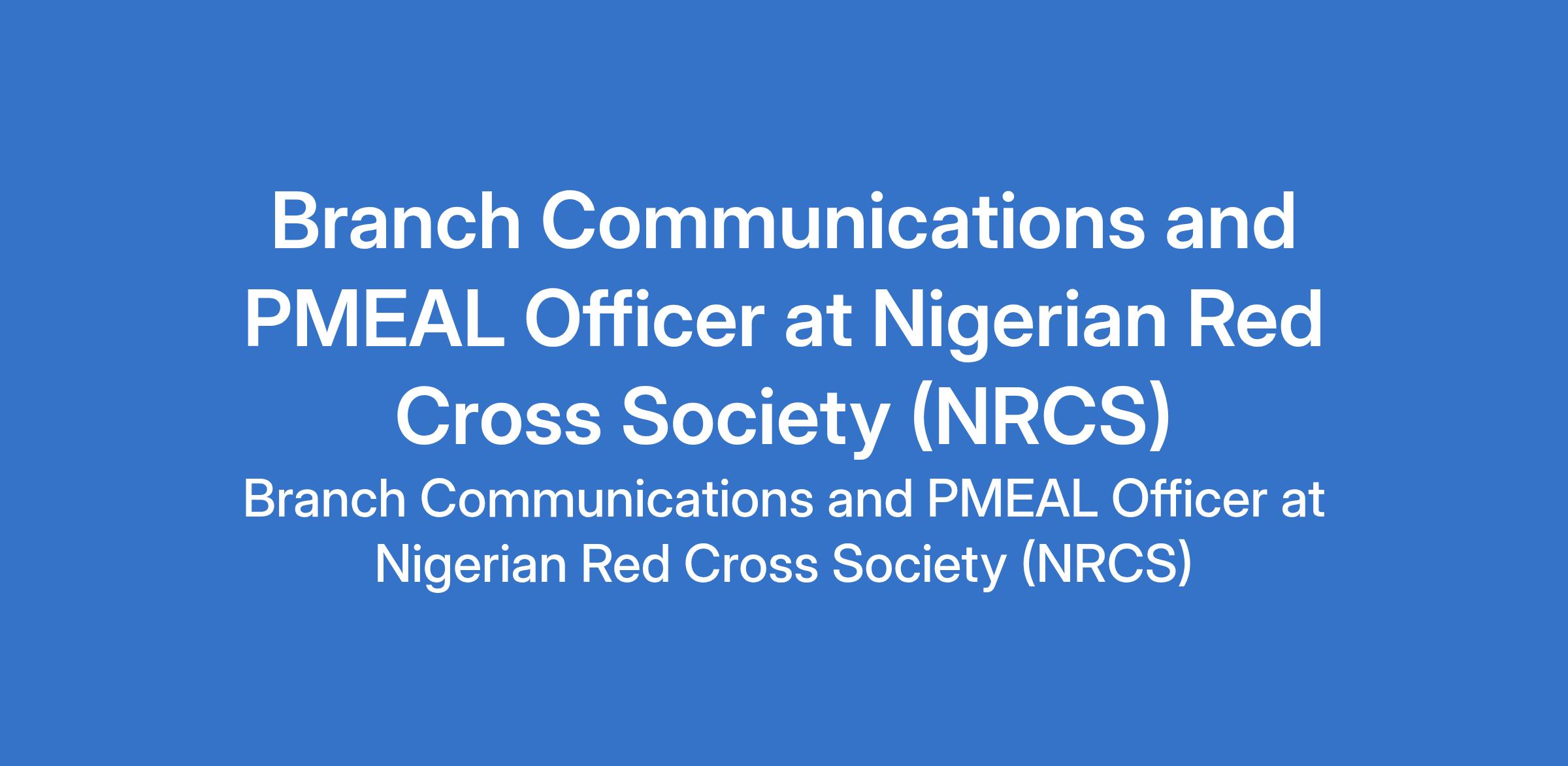 Nigerian Red Cross Society (NRCS) is recruiting to fill the position of: Branch Communications and PMEAL Officer. The position is located in Sokoto State. Interested candidates should possess a University Degree in Public Relations Affairs, Project Management or relevant qualification with a minimum of 3 years experience in communications and journalism.